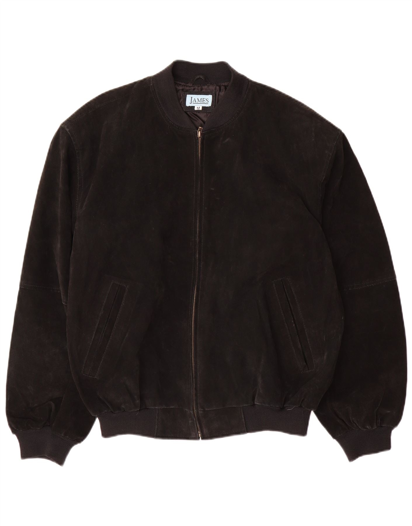 VINTAGE Ανδρικό Suede Bomber Jacket UK 38 Medium Black Leather