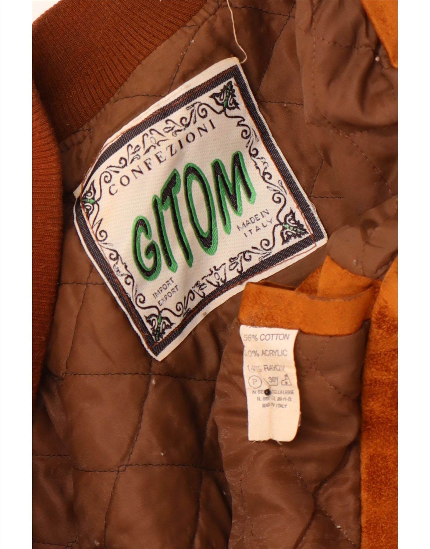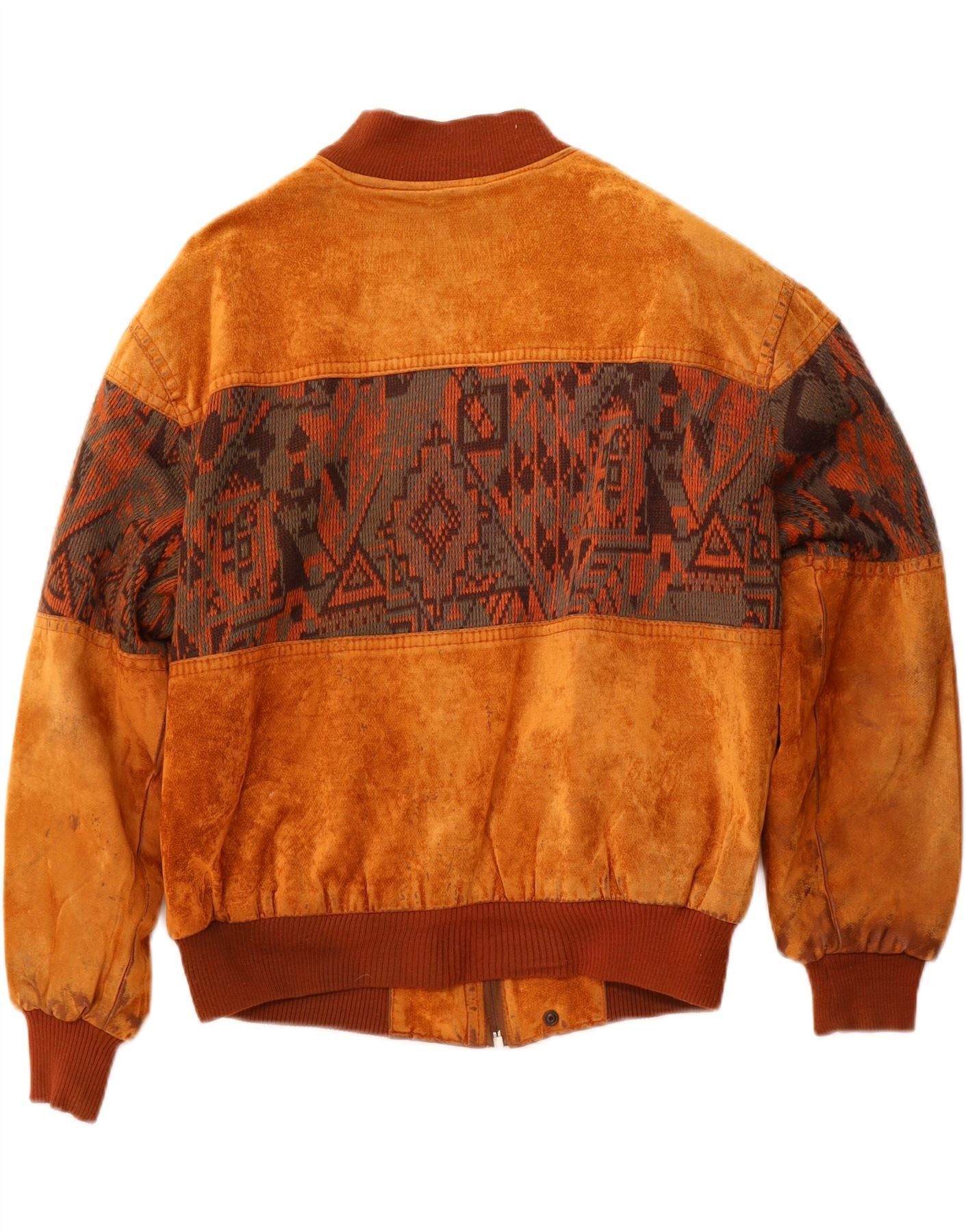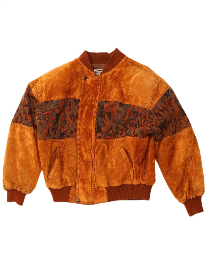 VINTAGE Ανδρικό Suede Bomber Jacket UK 42 XL καφέ γεωμετρικό βαμβάκι