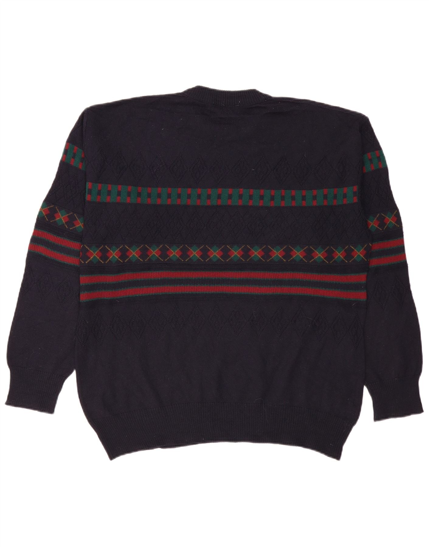 VINTAGE Ανδρικό πουλόβερ με λαιμόκοψη IT 50 Μεγάλο Navy Blue γεωμετρικό