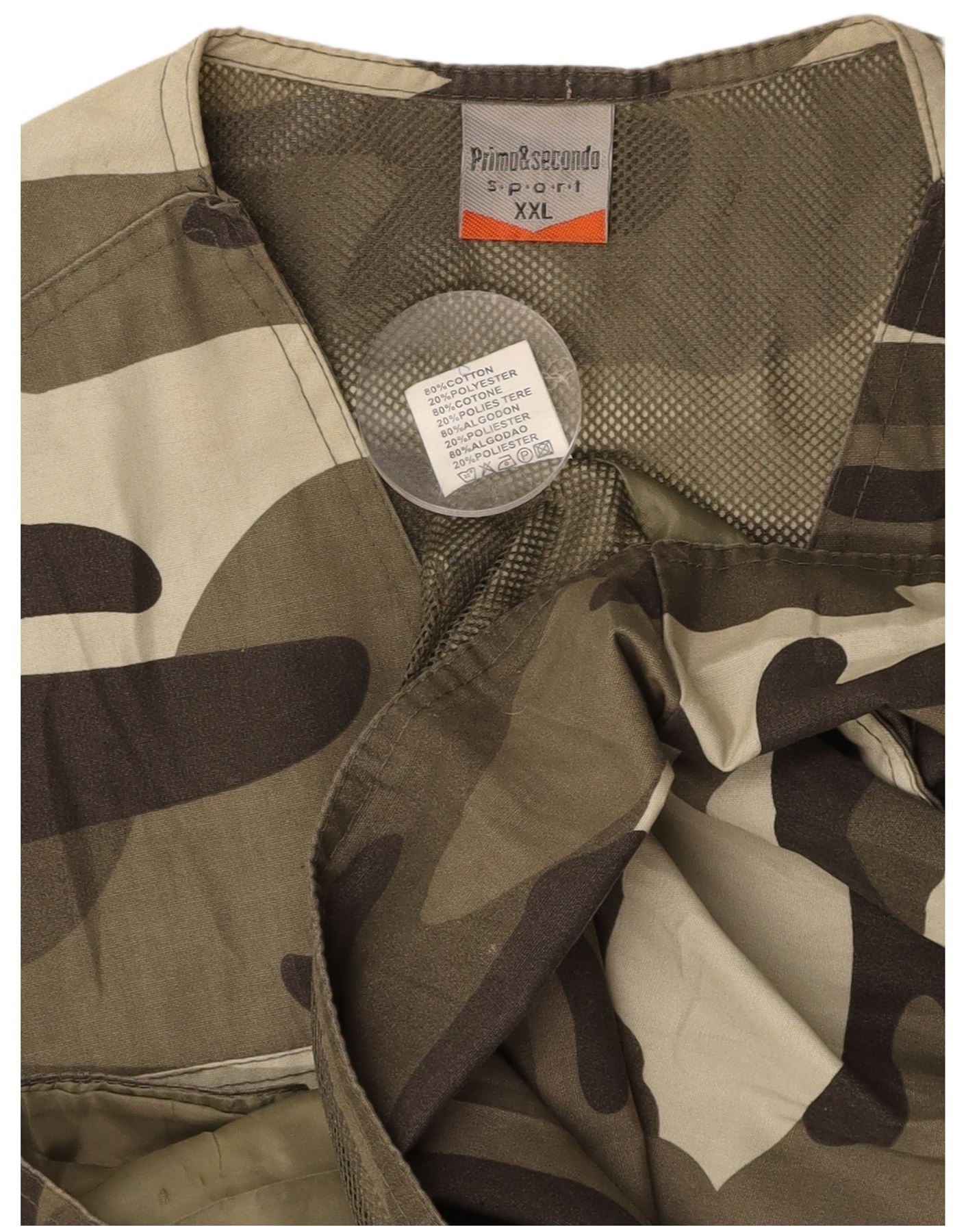 VINTAGE Mens Utility Gilet UK 44 2XL Χακί Καμουφλάζ Βαμβακερό