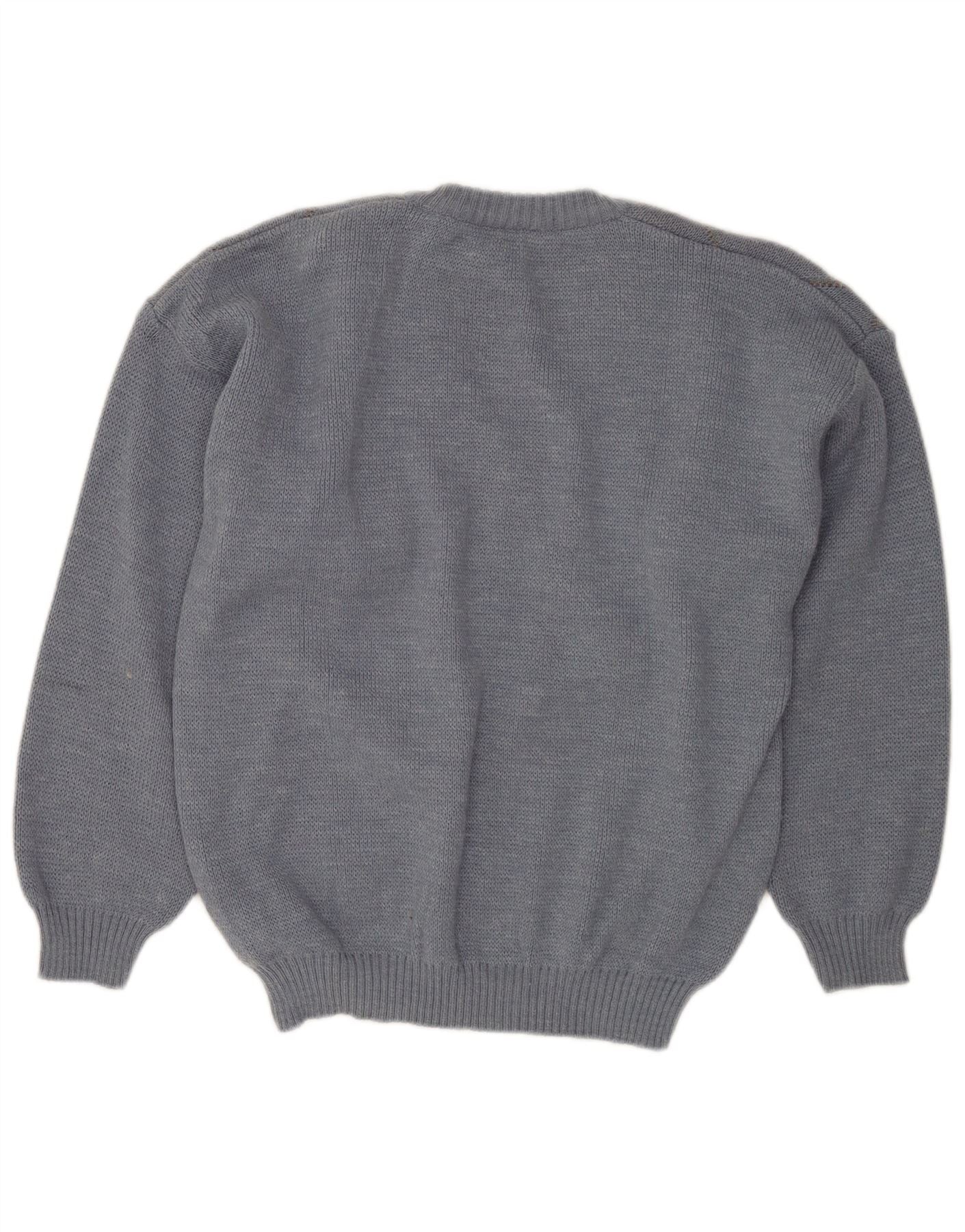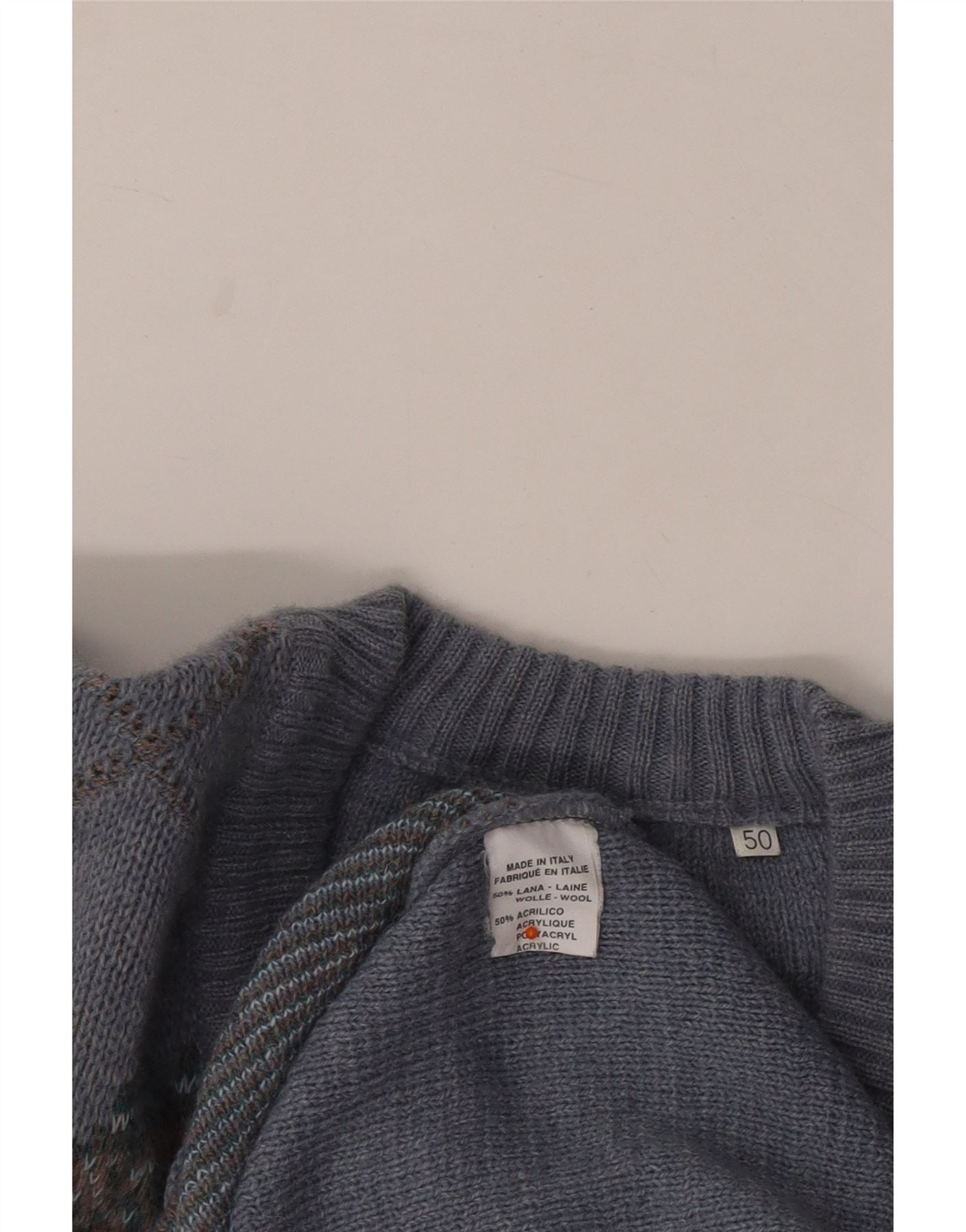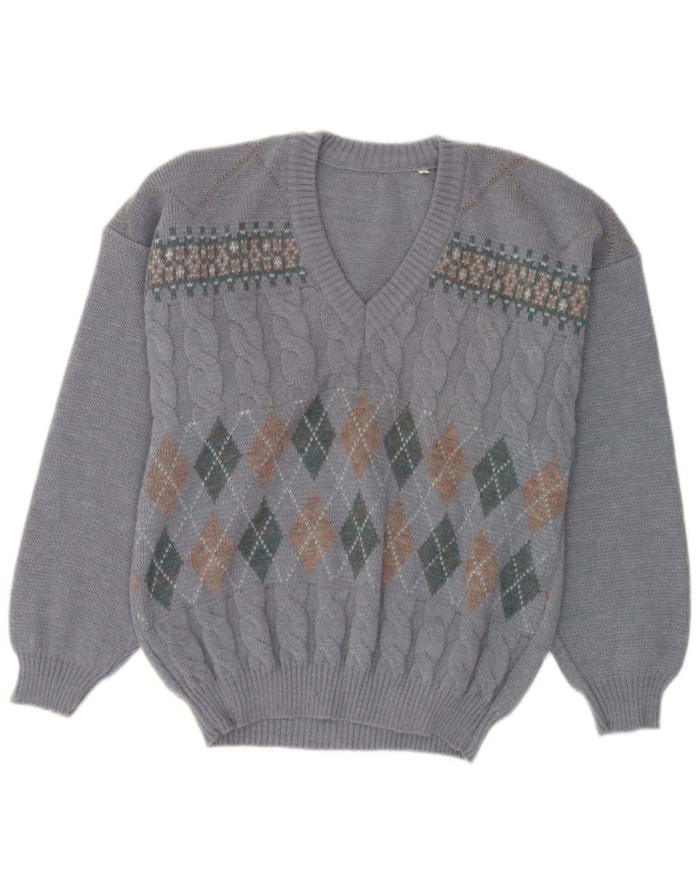 Ανδρικό πουλόβερ με λαιμόκοψη Vintage IT 50 μεσαίο μπλε Argyle/Diamond Wool