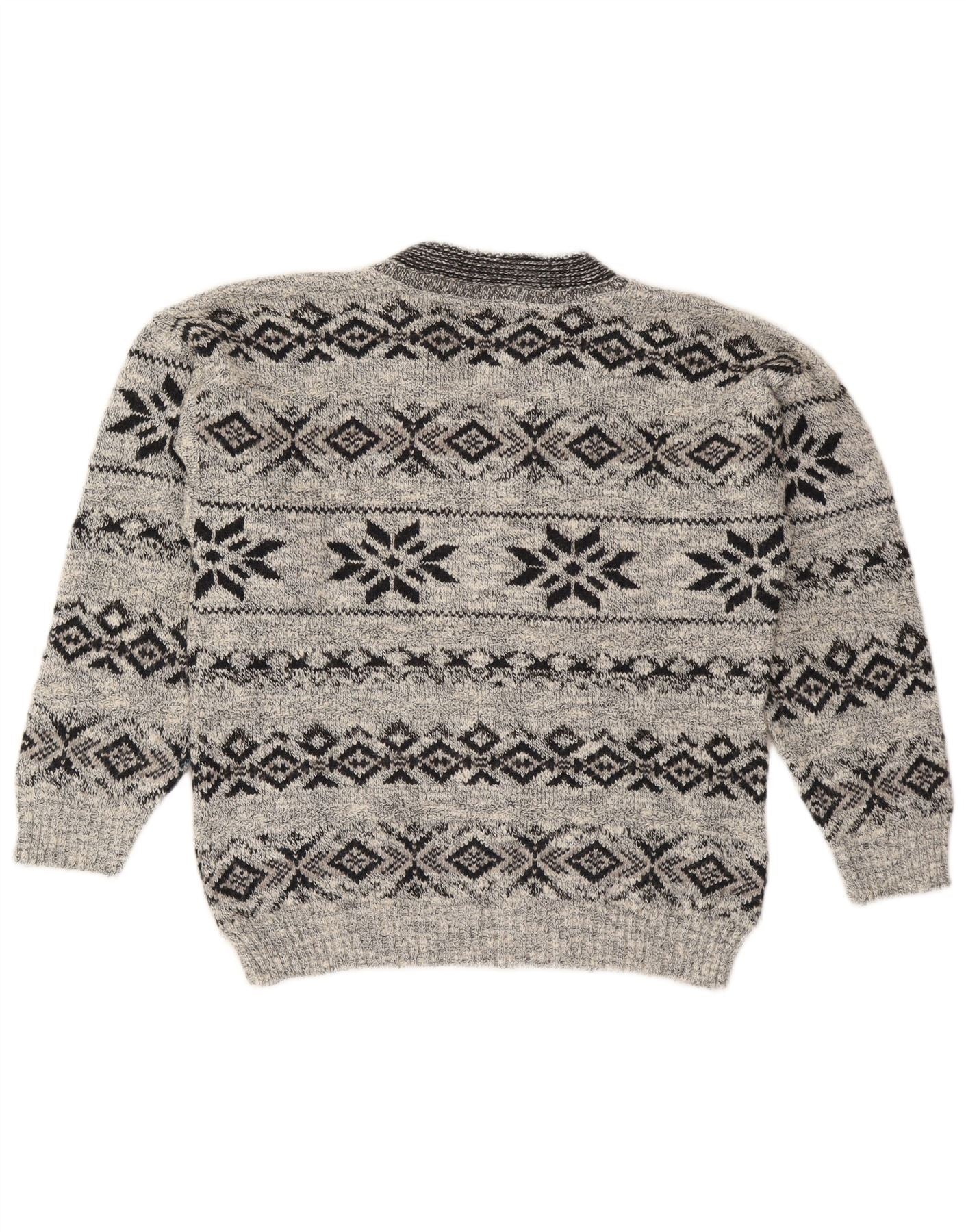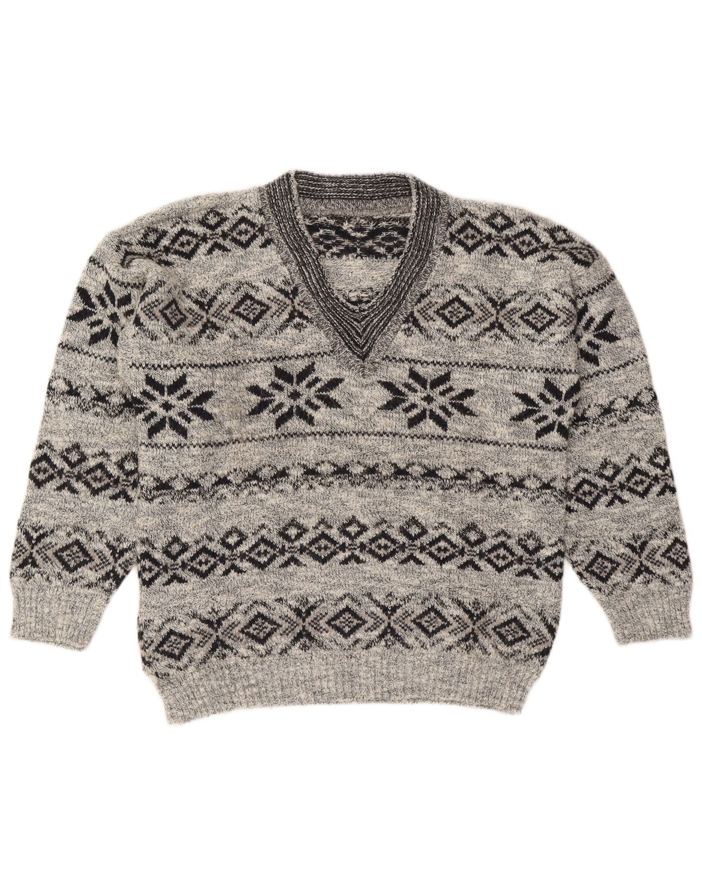 VINTAGE Ανδρικό πουλόβερ με λαιμόκοψη με λαιμόκοψη σε μεσαίο γκρι μαλλί Fair Isle