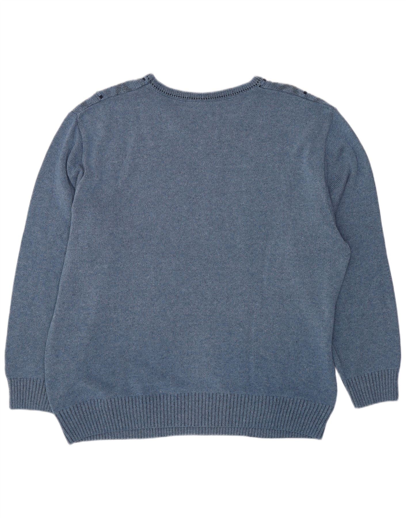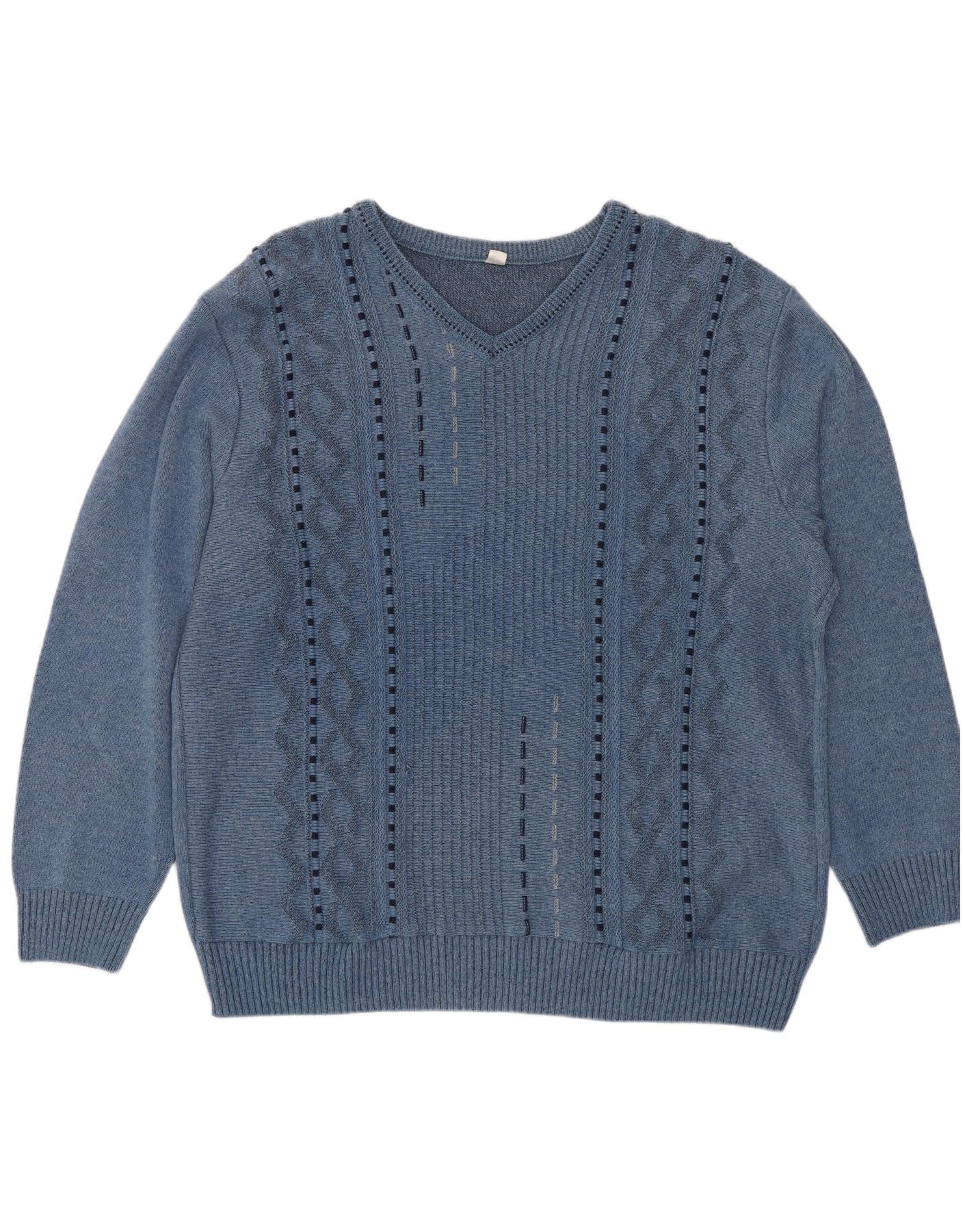 VINTAGE Ανδρικό πουλόβερ με V λαιμόκοψη UK 44 XL Μπλε γεωμετρικό βαμβακερό