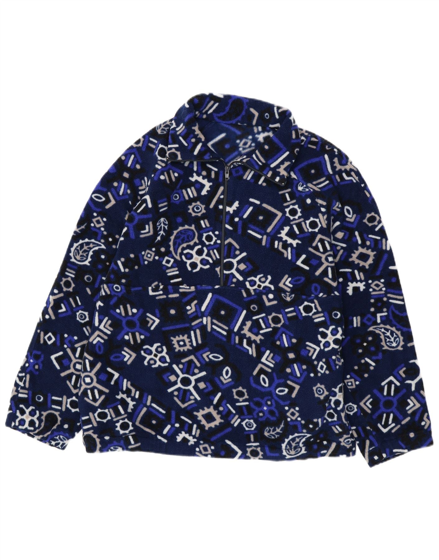 VINTAGE Ανδρικό φερμουάρ Fleece Jumper Μεγάλο Navy Blue γεωμετρικό