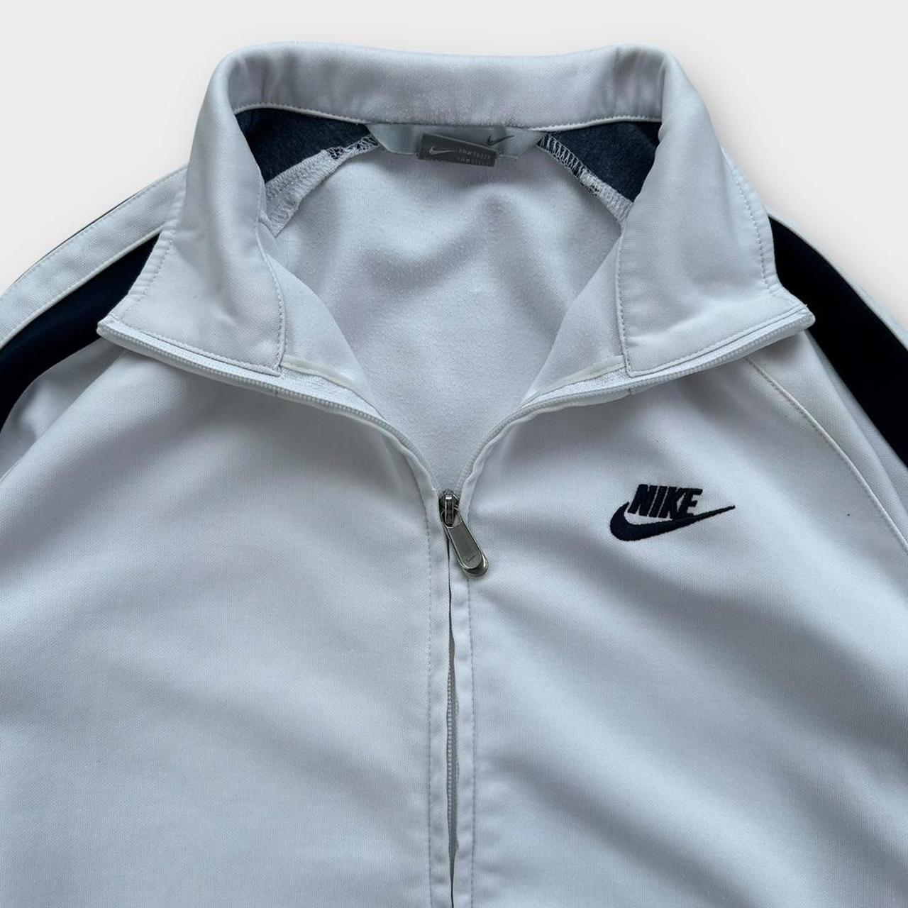 Vintage σακάκι Nike με φερμουάρ στις αρχές της δεκαετίας του 2000 σε λευκό και navy χρώμα με κεντημένο λογότυπο στο στήθος