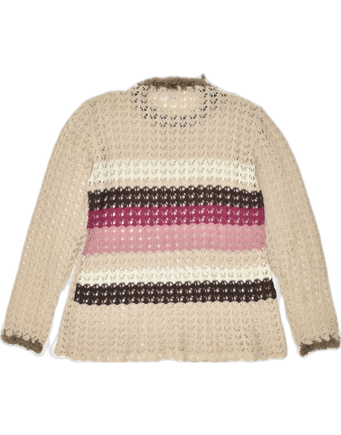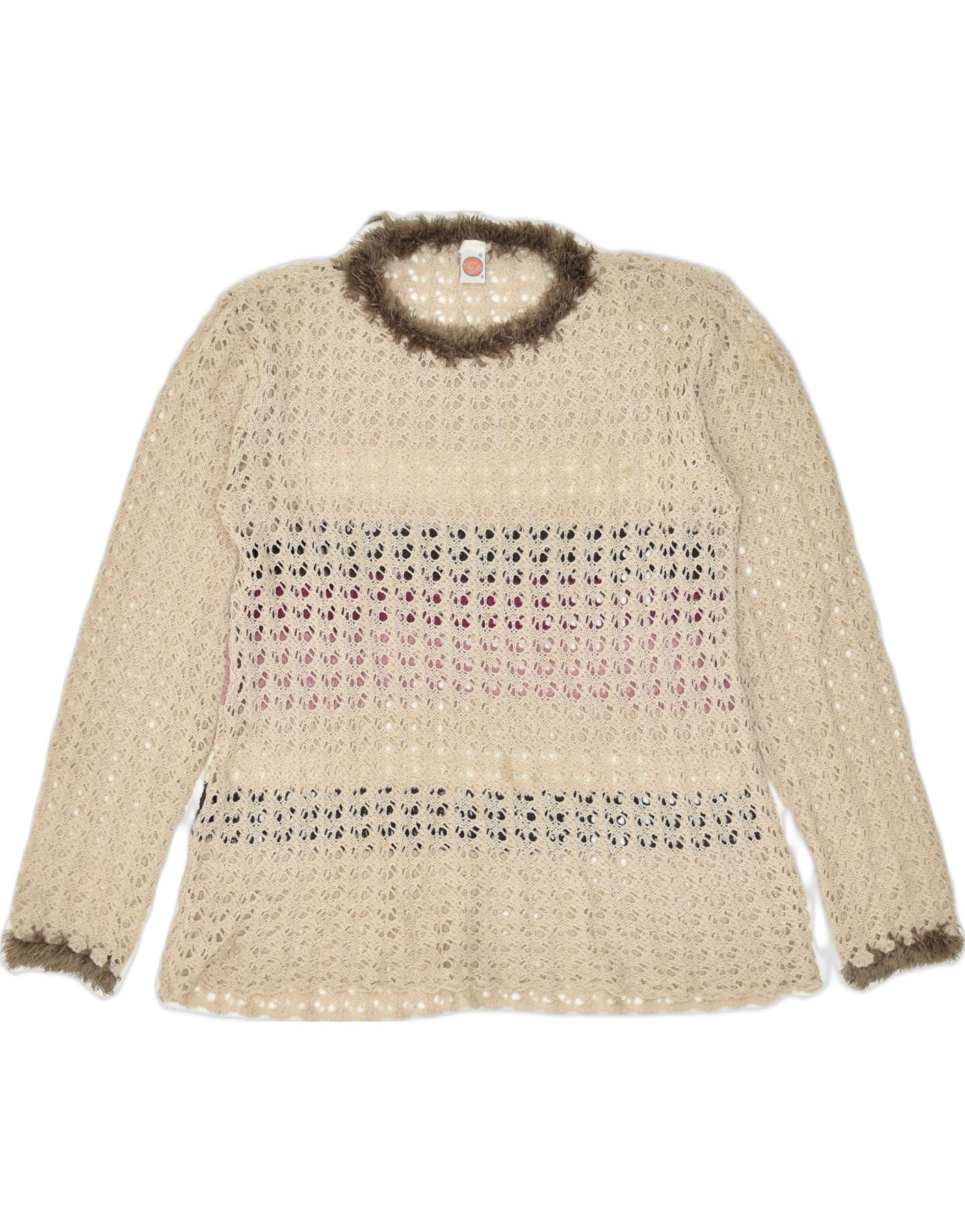 Γυναικείο πουλόβερ VINTAGE See Through Crew Neck Jumper UK 20 2XL Μπεζ νάιλον
