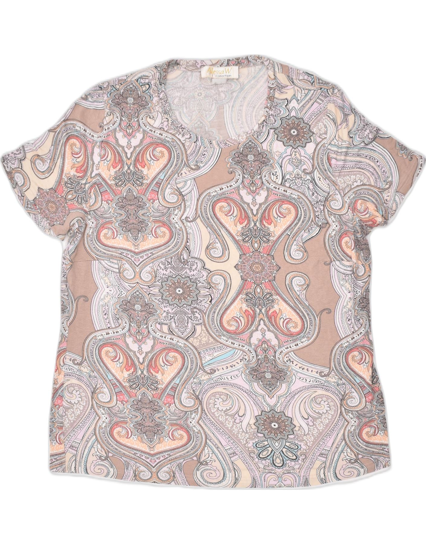 VINTAGE γυναικείο μπλουζάκι υπερμεγέθη τοπ UK 14 μεγάλο γκρι γεωμετρικό βαμβάκι