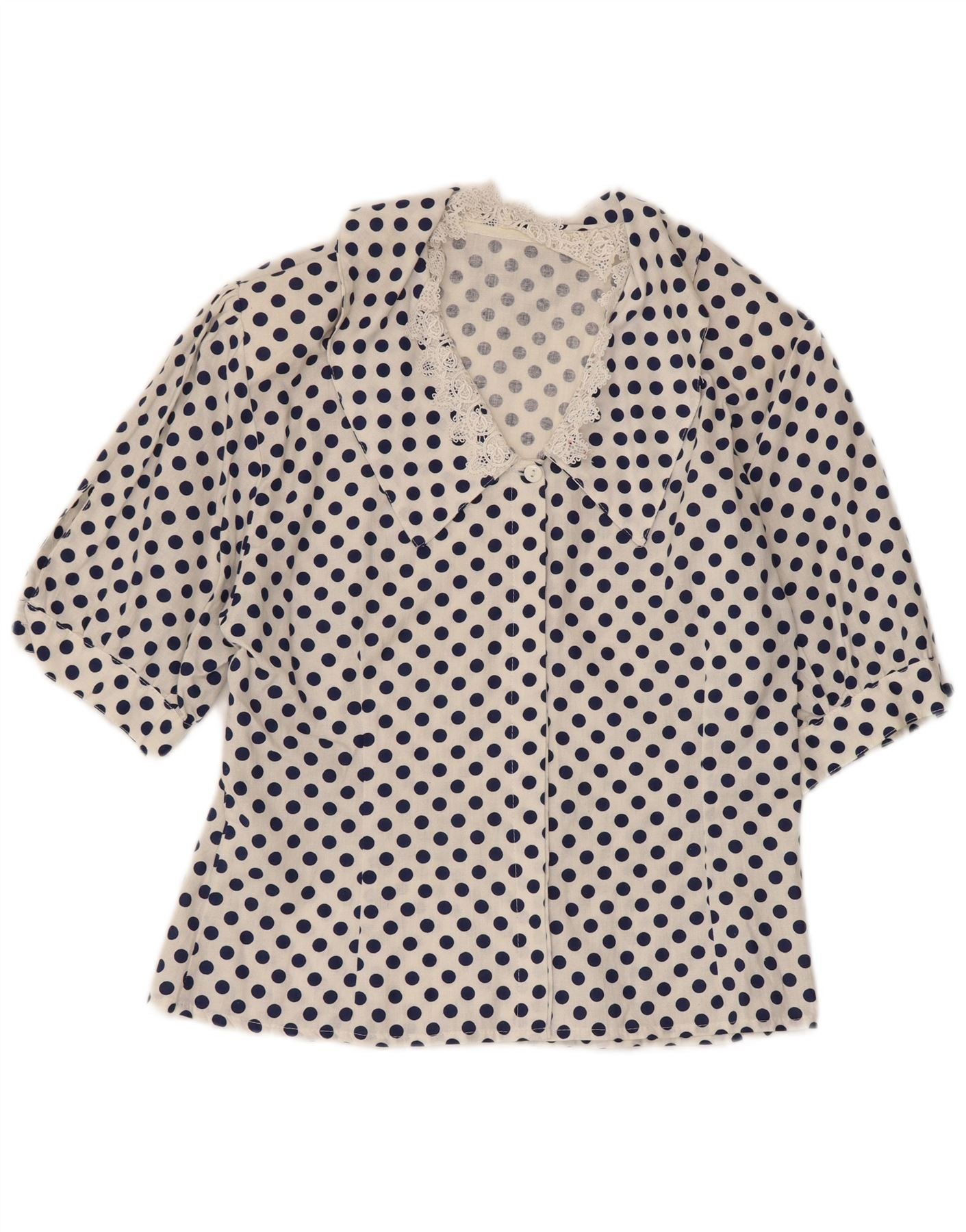 VINTAGE Γυναικείο πουκάμισο 1/2 μανίκι μπλούζα UK 12 μέτριο λευκό πουά