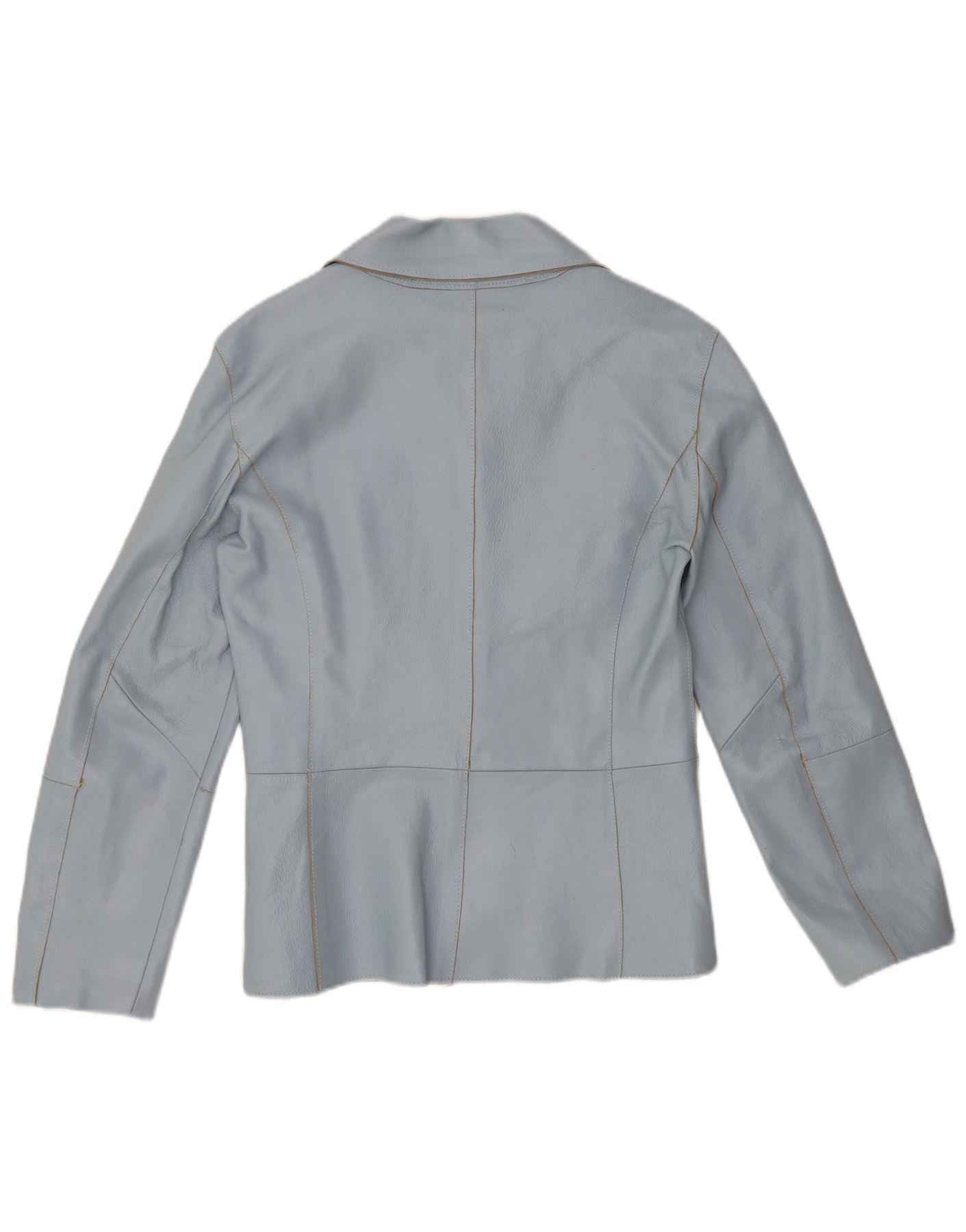 VINTAGE Γυναικείο Δερμάτινο Σακάκι Μπλέιζερ με 2 Κουμπιά UK 12 Medium Blue