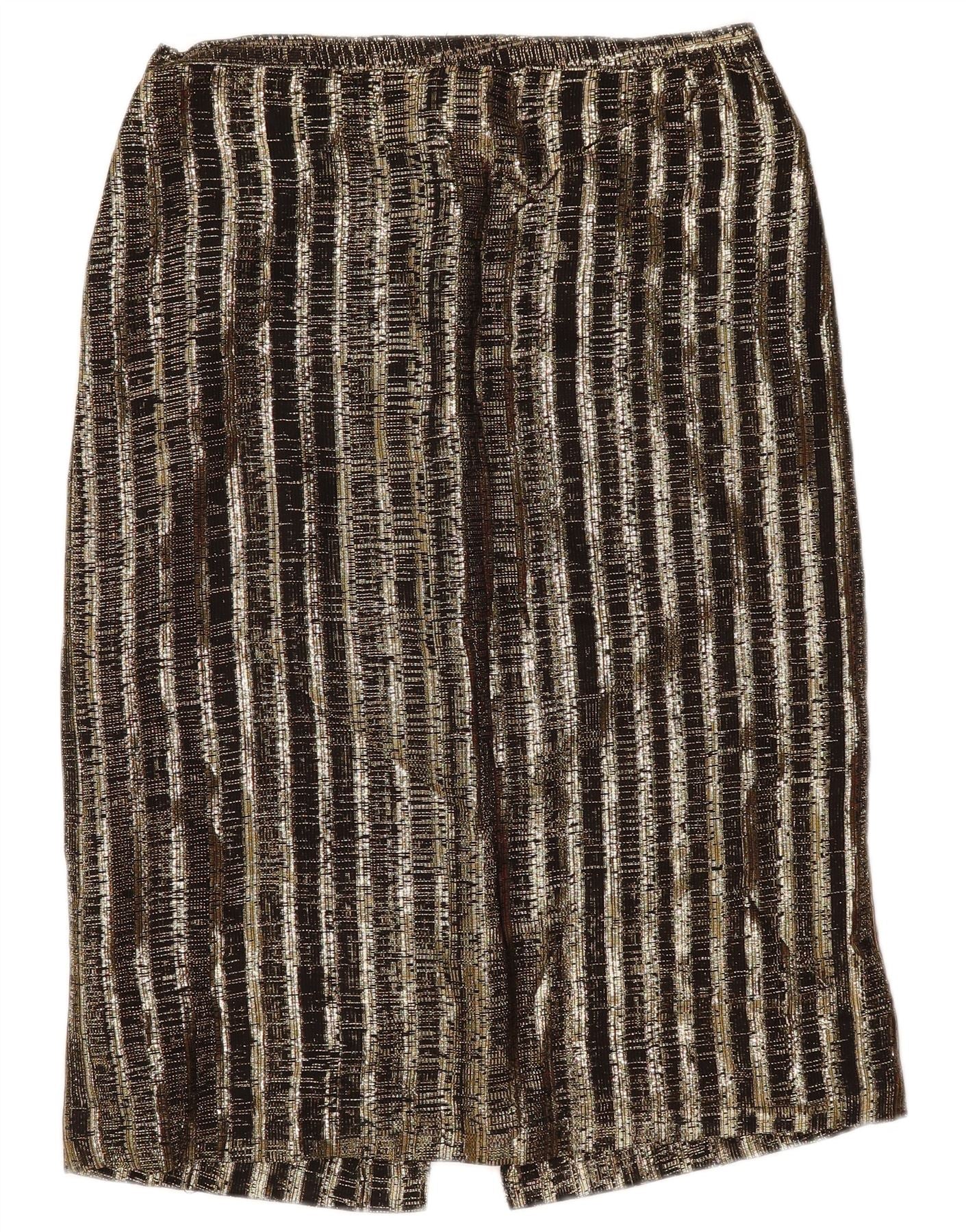 - Περιγραφή AI: Αυτό το σετ Vintage γυναικεία μπλούζα και φούστα είναι φτιαγμένο από αστραφτερό πολύχρωμο πλεκτό ύφασμα. Διαθέτει ένα αφηρημένο ριγέ μοτίβο σε μαύρους, χρυσούς και ασημί τόνους. Η μπλούζα έχει στρογγυλή λαιμόκοψη, ογκώδη μανίκια 3/4 και χαλαρή εφαρμογή πουλόβερ. Η ασορτί φούστα σε ίσιο κόψιμο ολοκληρώνει αυτό το ξεχωριστό ρετρό σύνολο.