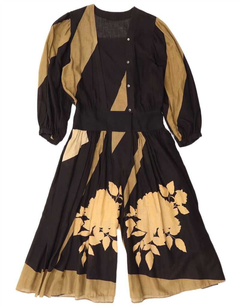 VINTAGE Womens 3/4 Sleeve Jumpsuit UK 14 Medium Black Floral