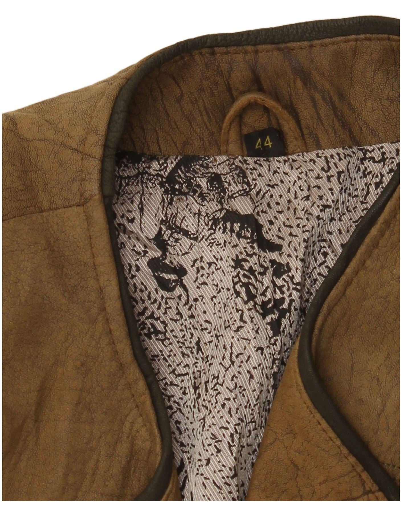 VINTAGE Γυναικείο 3/4 μανίκι δερμάτινο μπλέιζερ μπουφάν EU 44 XL Χακί