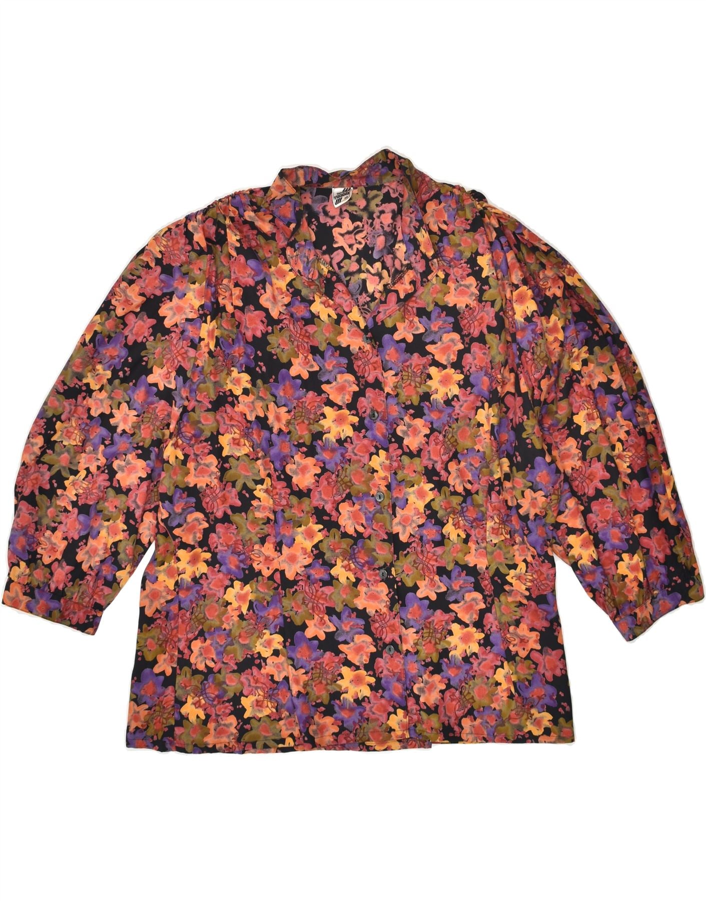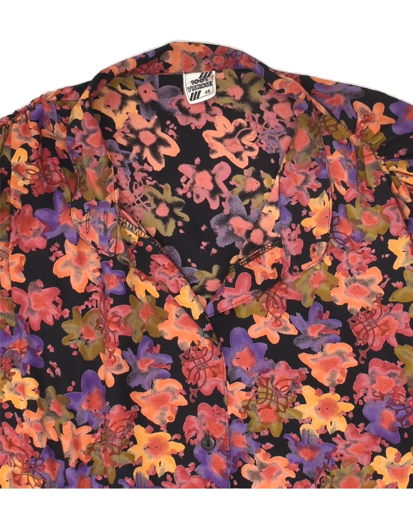 VINTAGE Womens 3/4 Sleeve Shirt Blouse IT 46 Large Red Floral Viscose
