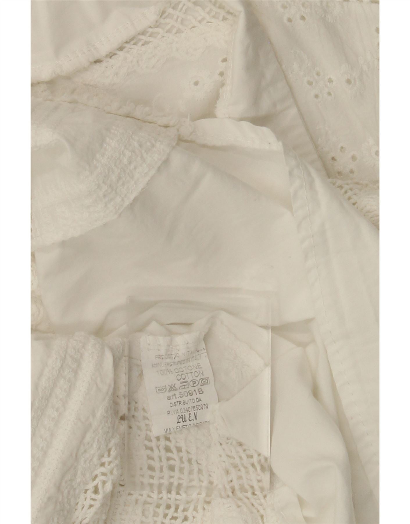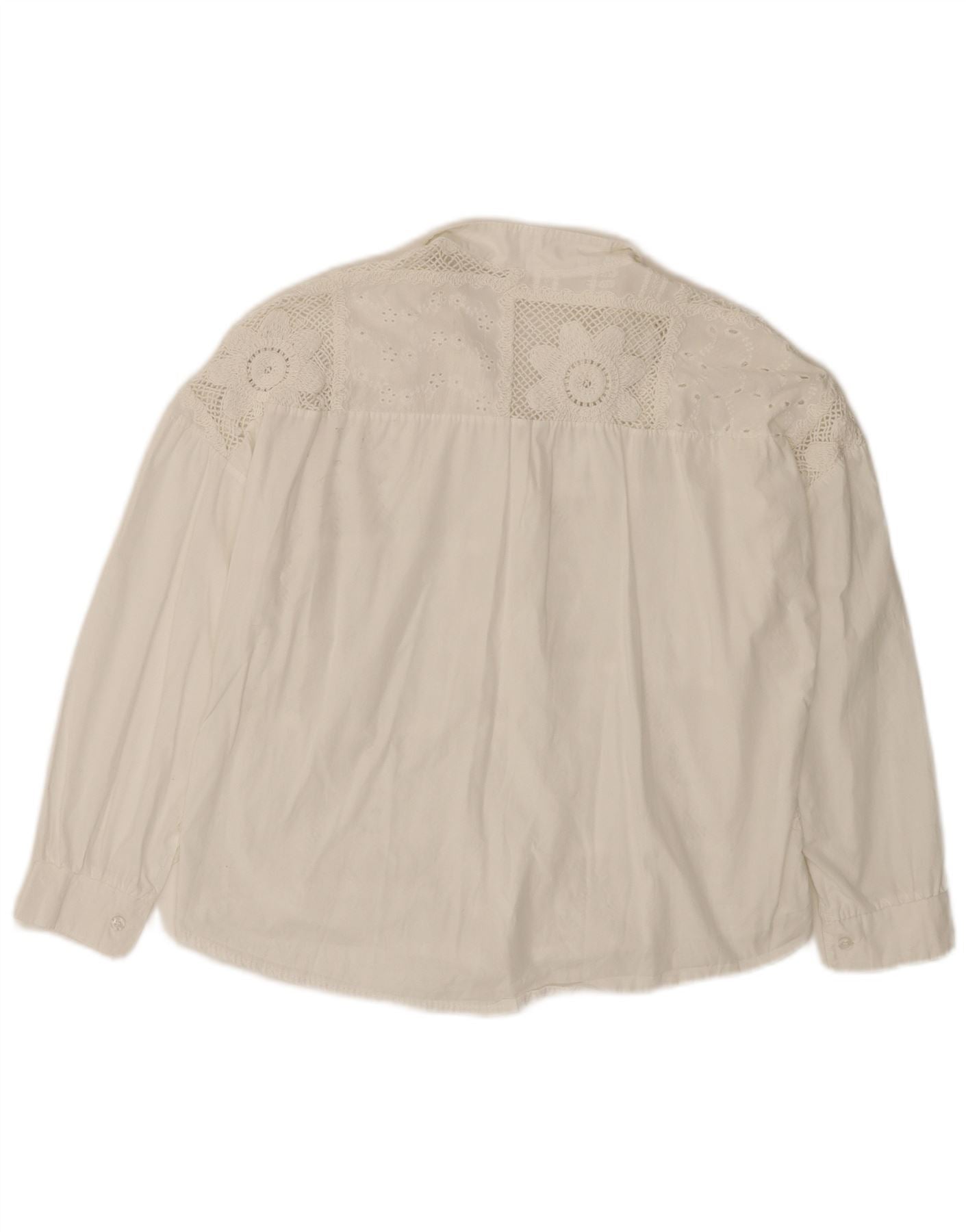 VINTAGE Γυναικείο πουκάμισο 3/4 μανίκι μπλούζα UK 14 Μεσαίο λευκό βαμβακερό φλοράλ