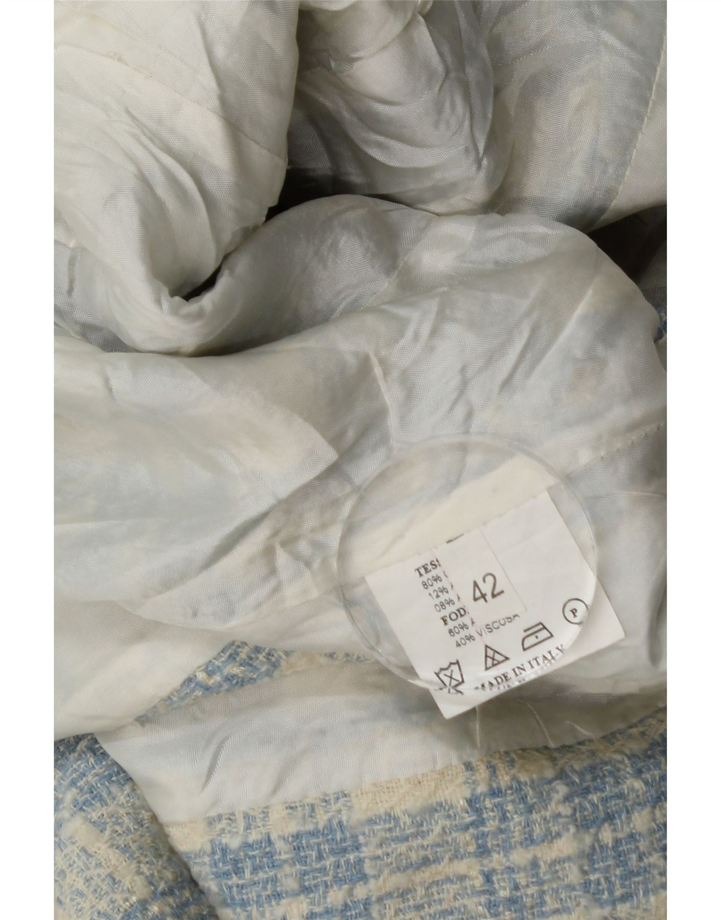 - Περιγραφή AI: Αυτό το vintage γυναικείο σακάκι μπλέιζερ είναι φτιαγμένο από ανάγλυφο τουίντ ύφασμα, με μπλε και εκρού ύφανση. Παρουσιάζει κλασική λαιμόκοψη με γιακά και μακριά μανίκια. Η κανονική εφαρμογή προσφέρει μια άνετη σιλουέτα. Το μπροστινό κλείσιμο με κουμπί και οι διακοσμητικές τσέπες με πτερύγιο προσθέτουν παραδοσιακές λεπτομέρειες. Αυτό το σακάκι με επένδυση ενσαρκώνει το διαχρονικό στυλ.