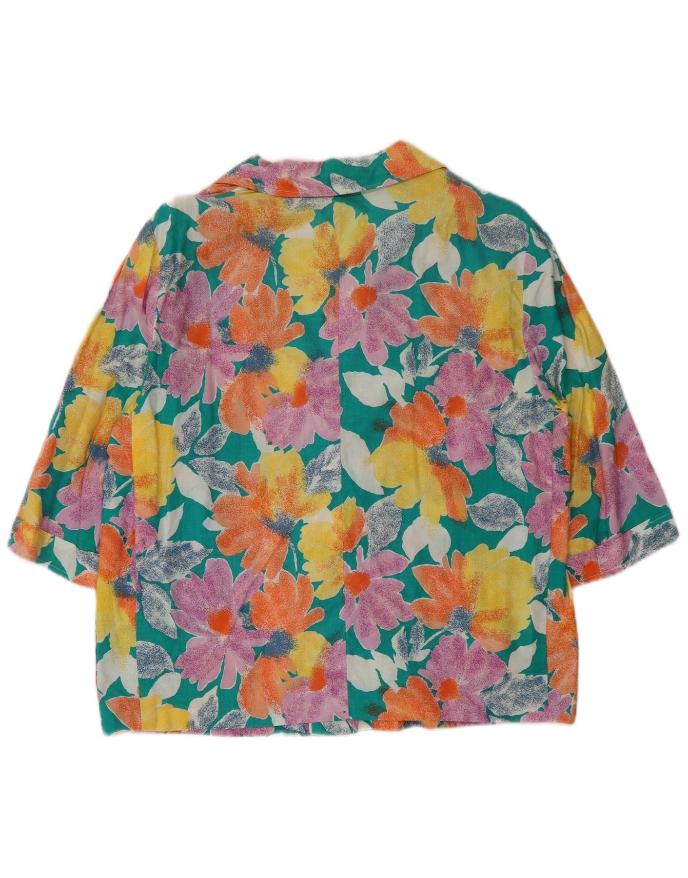 - Περιγραφή AI: Αυτή η vintage γυναικεία μπλούζα πουκάμισο είναι φτιαγμένη από ένα ελαφρύ υφαντό ύφασμα. Διαθέτει ένα ζωντανό πολύχρωμο λουλουδάτο μοτίβο, με αποχρώσεις του πράσινου, του κίτρινου και του ροζ. Η λαιμόκοψη με γιακά και το κλείσιμο με κουμπί προσφέρουν μια κλασική σιλουέτα. Διαθέτει πρακτικές μπροστινές τσέπες. Τα μανίκια 3/4 και η χαλαρή εφαρμογή εξασφαλίζουν άνεση και ευκολία στην κίνηση. Αυτή η μπλούζα σε τροπικό στυλ είναι ιδανική για χαλαρή, αλλά και κομψή εμφάνιση.