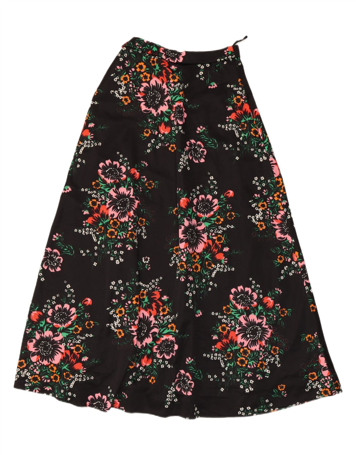VINTAGE Γυναικεία Φούστα σε A-Line W28 Μεσαίο Μαύρο Floral