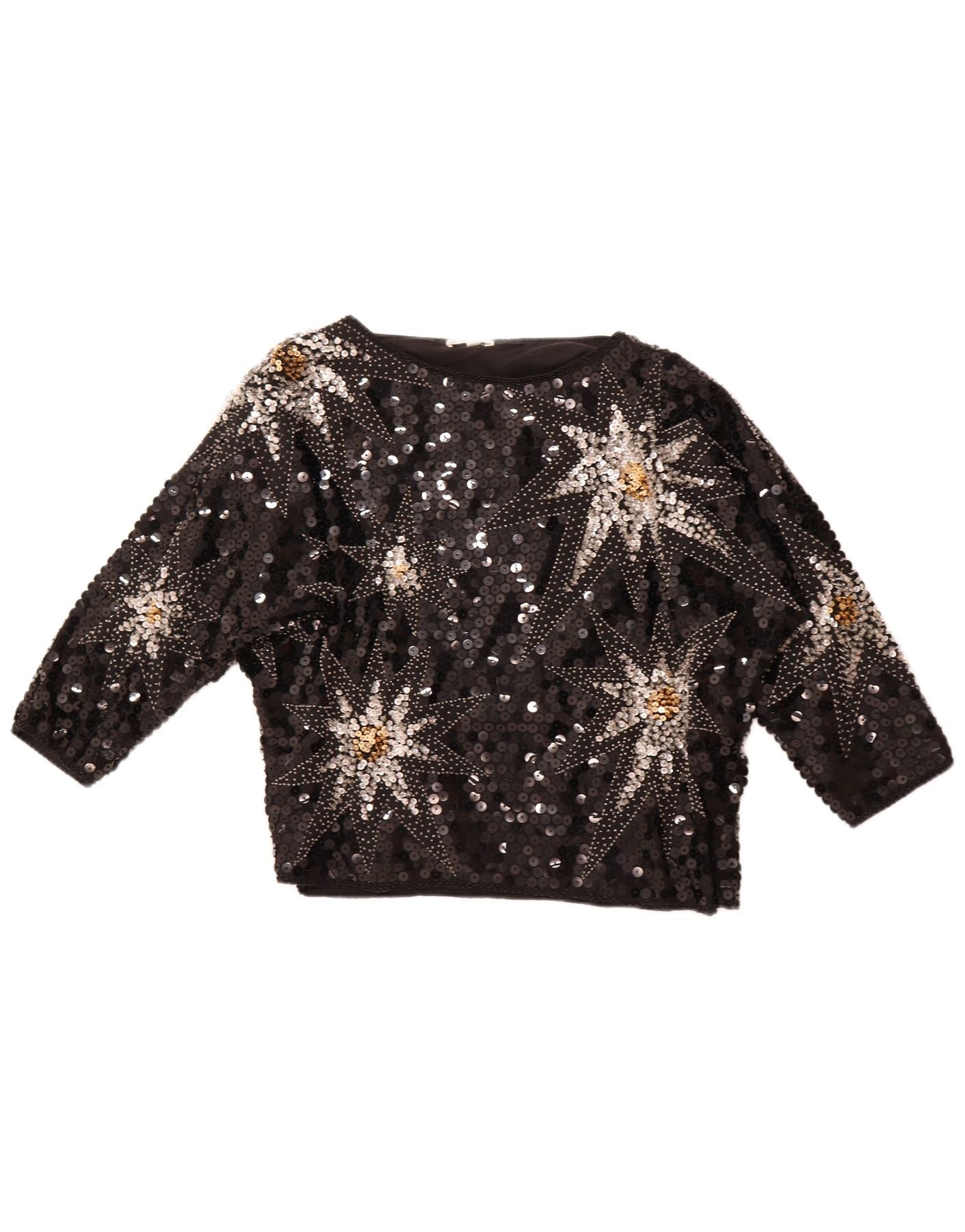 VINTAGE Γυναικεία Abstract Pattern 3/4 Μπλούζα με μανίκια τοπ EU 42 Large Black