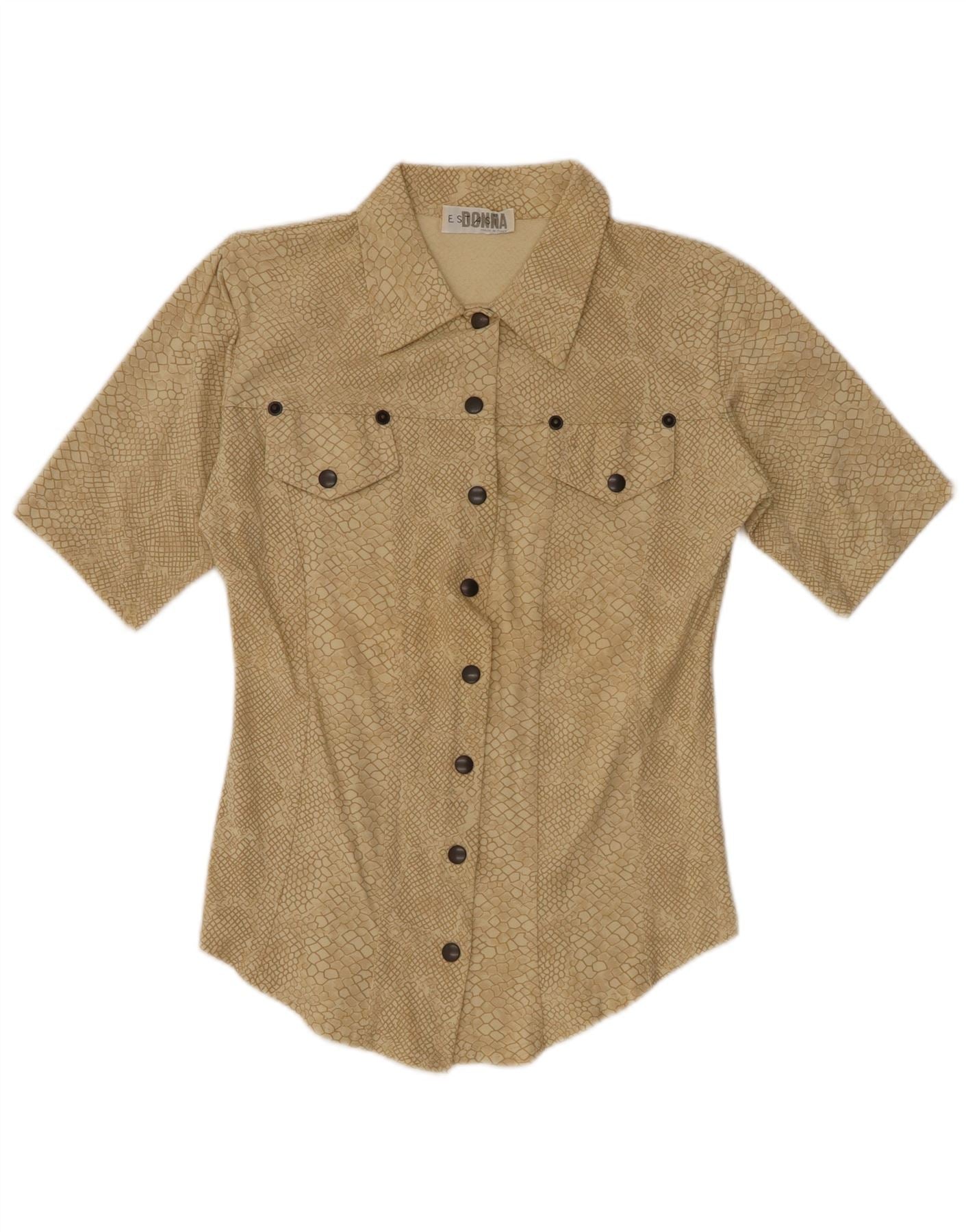 Home > Γυναικεία > Ρούχα Depop > Γυναικείο πουκάμισο με αφηρημένο σχέδιο VINTAGE UK 12 Medium Beige Animal print