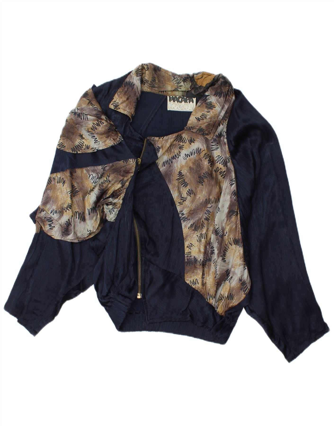 Vintage γυναικείο Asymmetric Bomber Jacket UK 10 Small Navy Blue Animal Print
