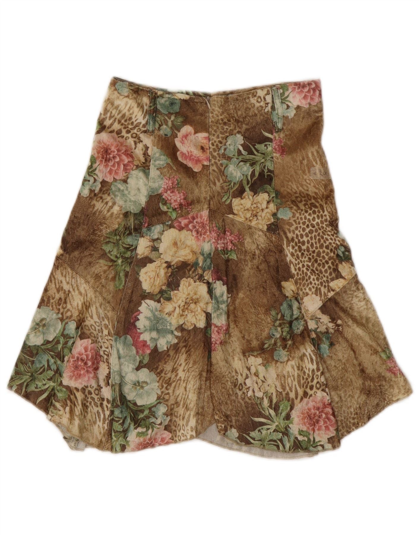 Γυναικεία ασύμμετρη φούστα VINTAGE IT 32 2XS W23 Καφέ Floral Polyester
