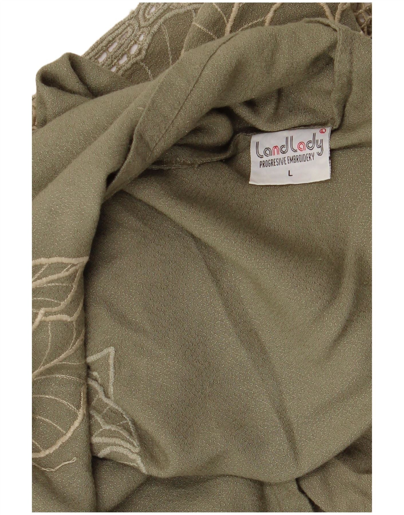 - Περιγραφή AI: Αυτή η γυναικεία μπλούζα LandLady έρχεται σε ένα ευέλικτο χακί ύφασμα. Διαθέτει χαλαρή, χαλαρή εφαρμογή με στρογγυλή λαιμόκοψη. Τα κοντά μανίκια προσφέρουν μια άνετη σιλουέτα. Το σχέδιο πουλόβερ ενισχύεται από περίπλοκες κεντημένες λουλουδένιες λεπτομέρειες σε όλο το στήθος. Μια λεπτή επένδυση από βελονάκι κοσμεί τη λαιμόκοψη, προσθέτοντας μια μποέμ πινελιά. Αυτό το κομμάτι συνδυάζει την άνεση με το κομψό, καλλιτεχνικό ταλέντο, ιδανικό για μια χαλαρή αλλά κομψή εμφάνιση.