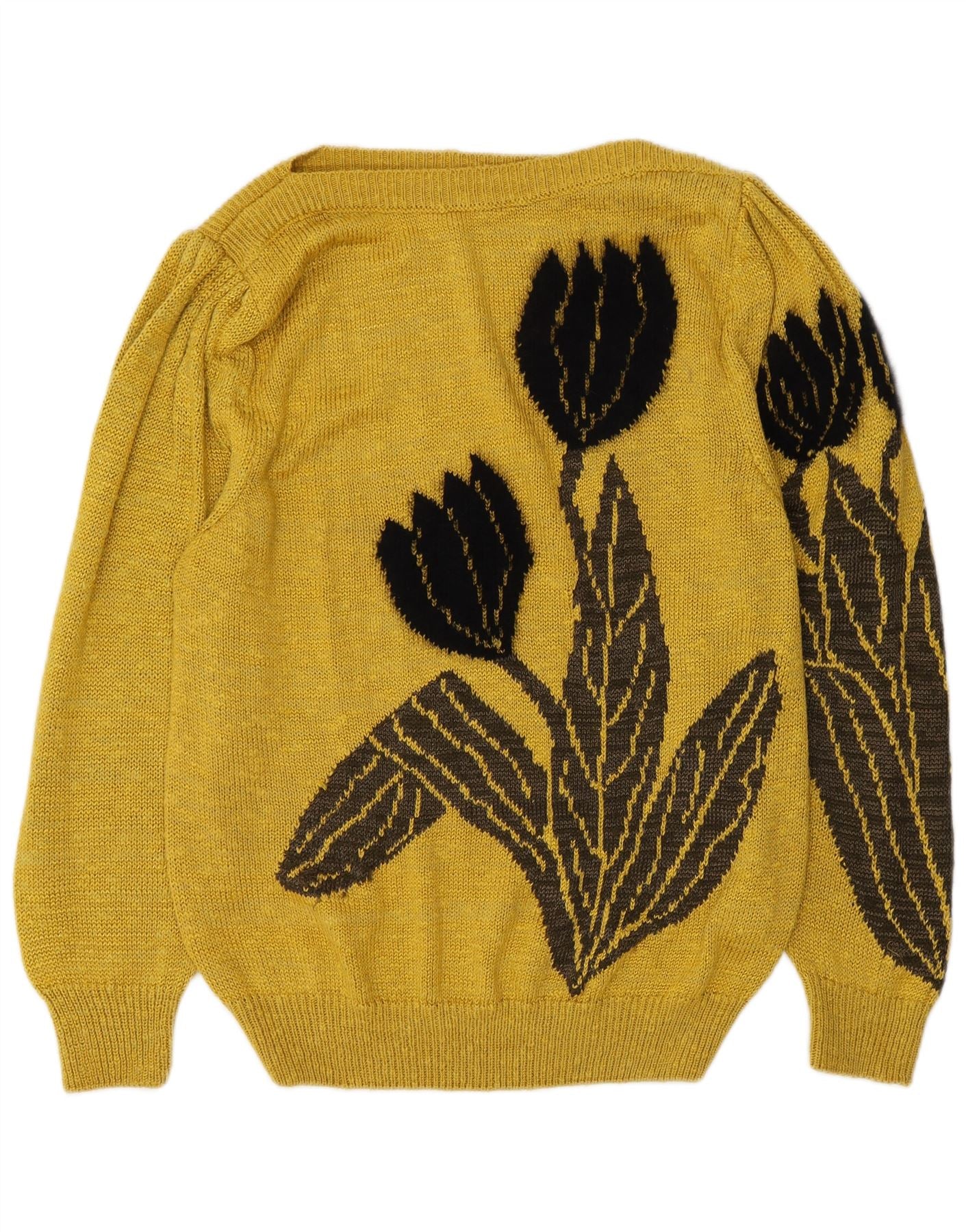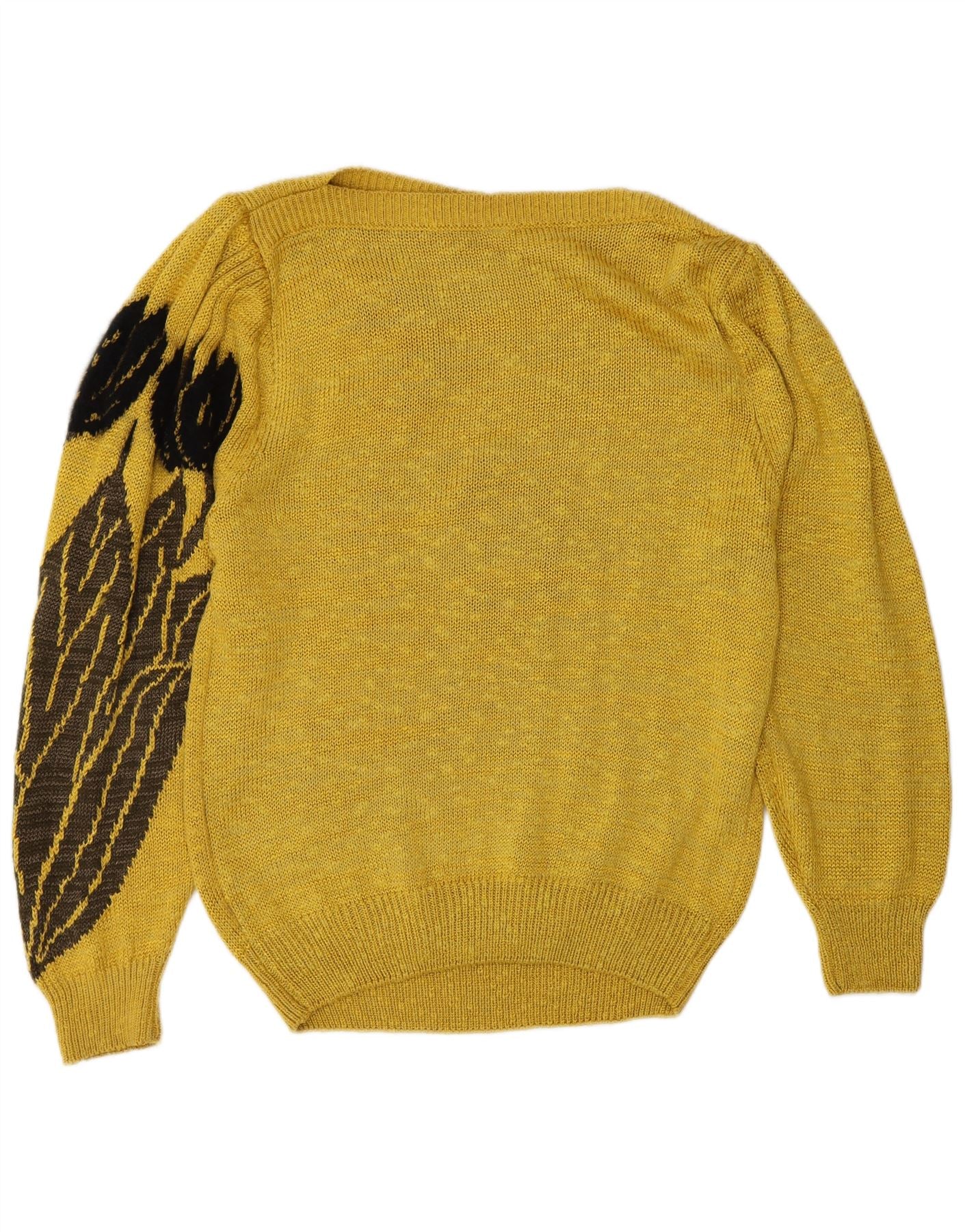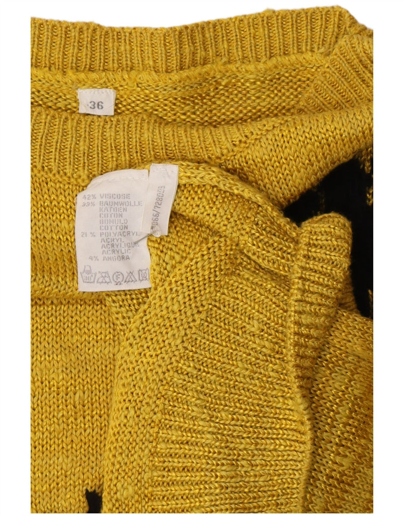 VINTAGE Womens Boat Neck Jumper Sweater EU 36 Small Yellow Floral