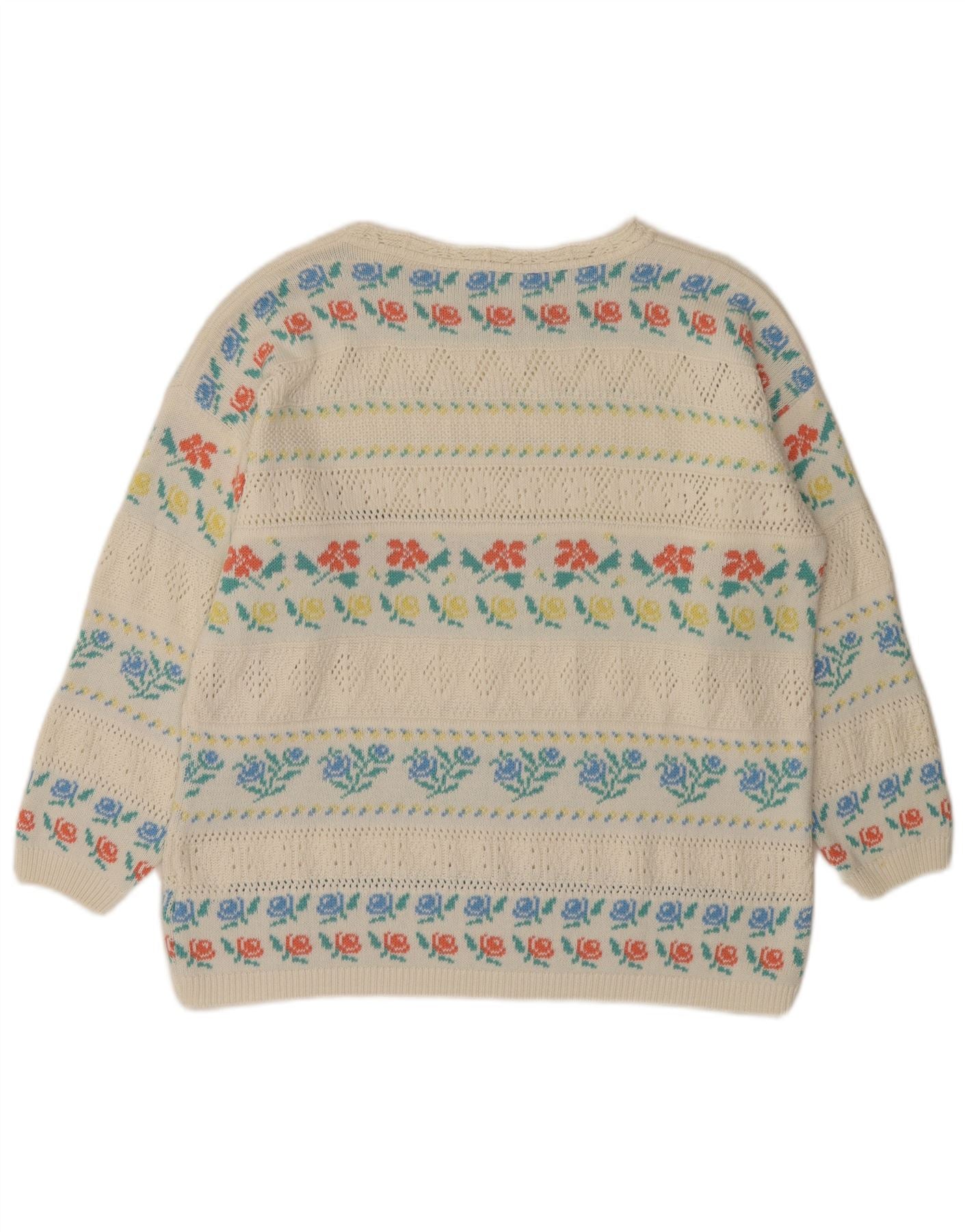VINTAGE Γυναικείο πουλόβερ με λαιμό καραβάκι IT 46 μεγάλο λευκό φλοράλ ακρυλικό