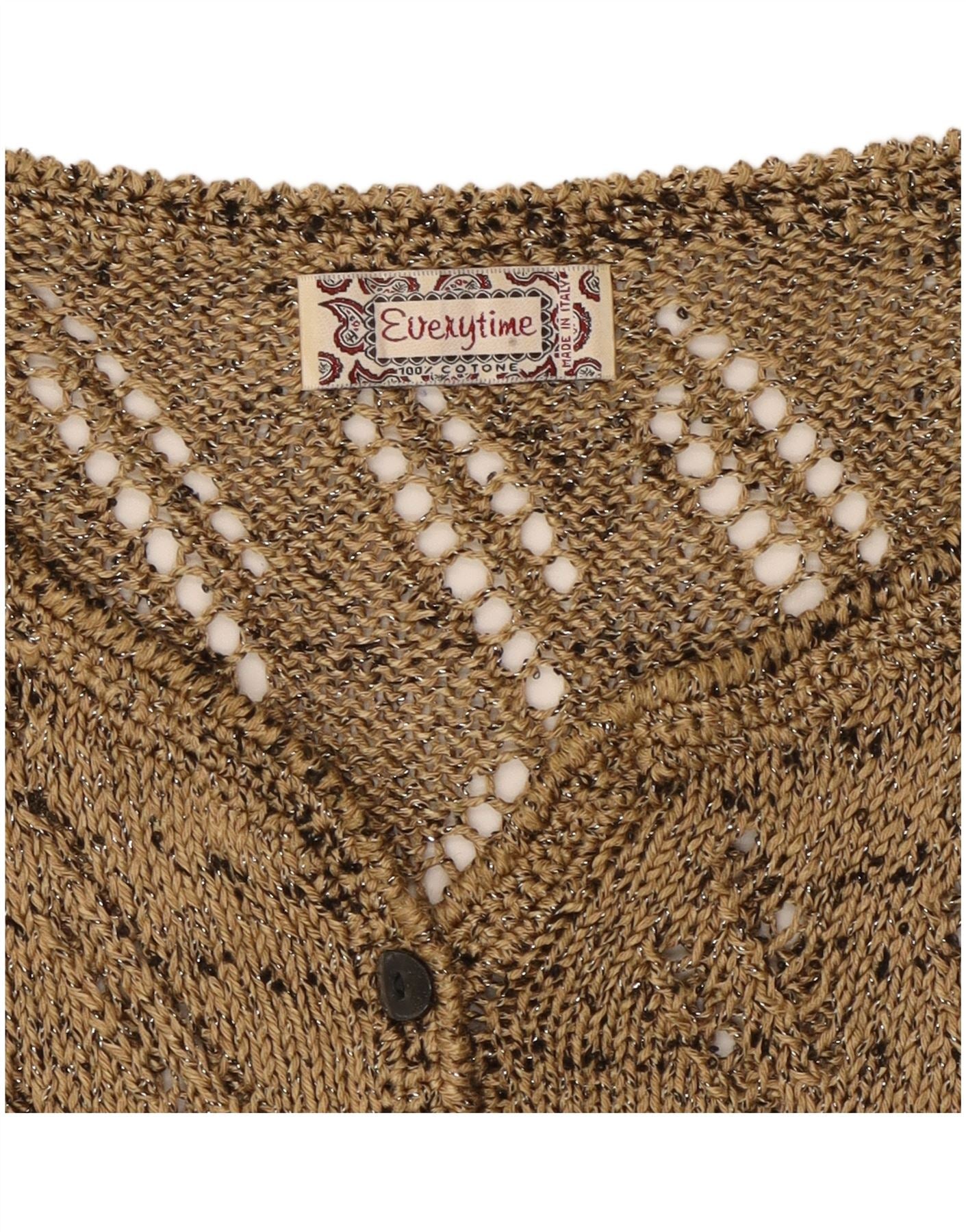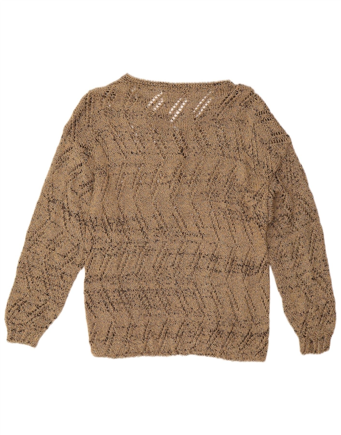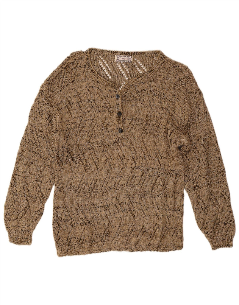 VINTAGE Womens Boat Neck Jumper Sweater UK 12 Medium Gold Flecked Cotton