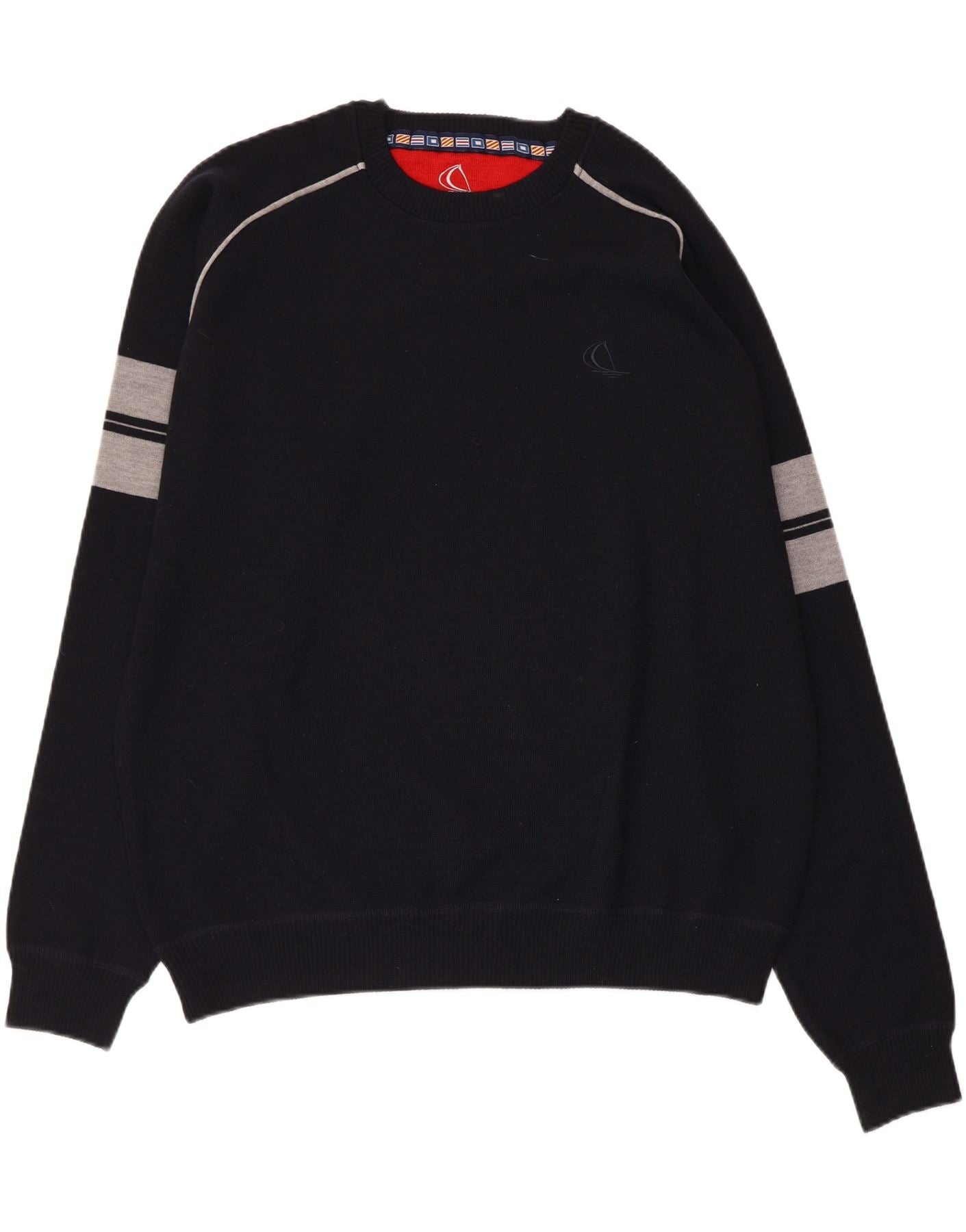 VINTAGE Γυναικείο πουλόβερ με λαιμό σκάφος UK 22 3XL Navy Blue Colorblock