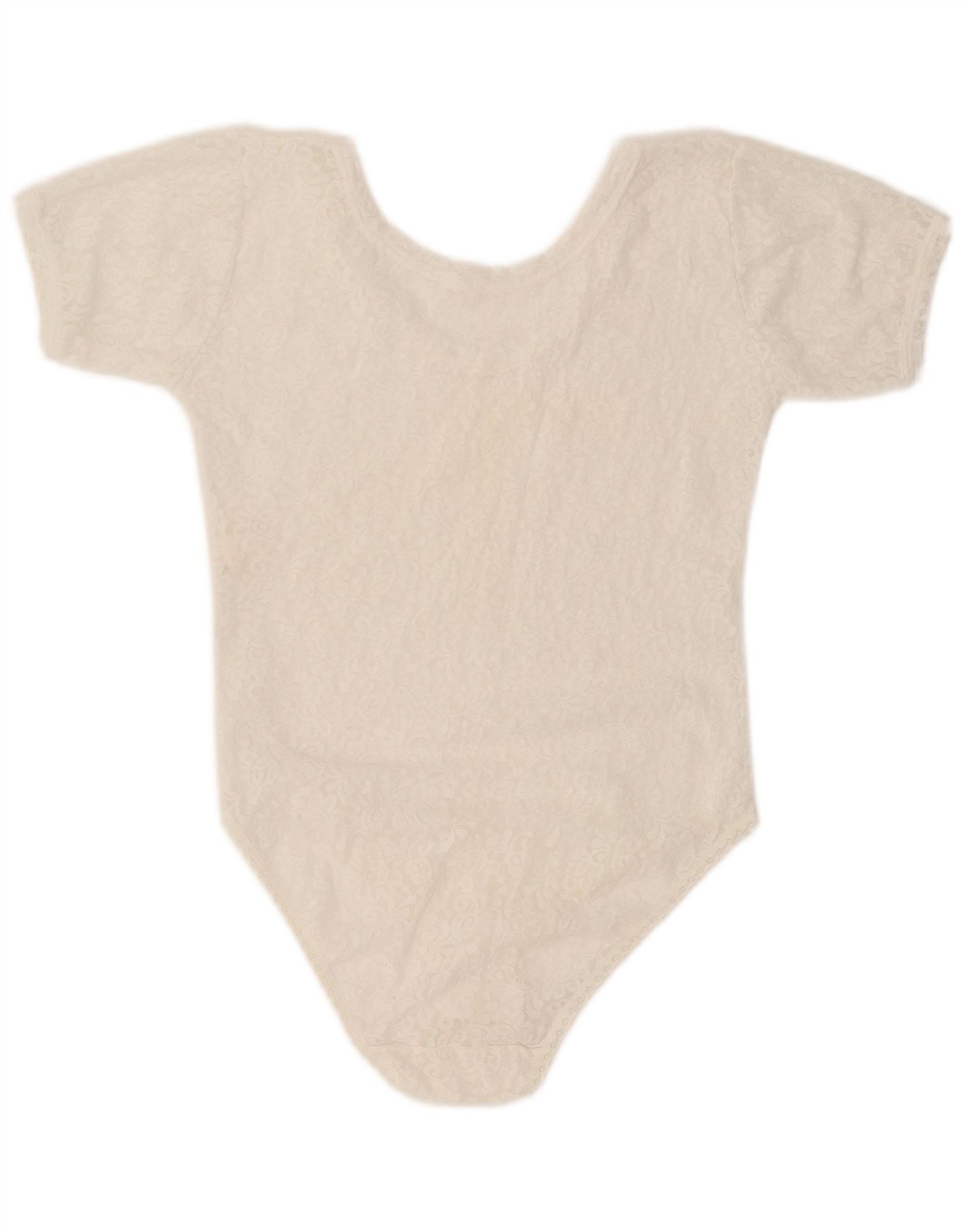 VINTAGE Womens Bodysuit UK 12 Medium White Floral