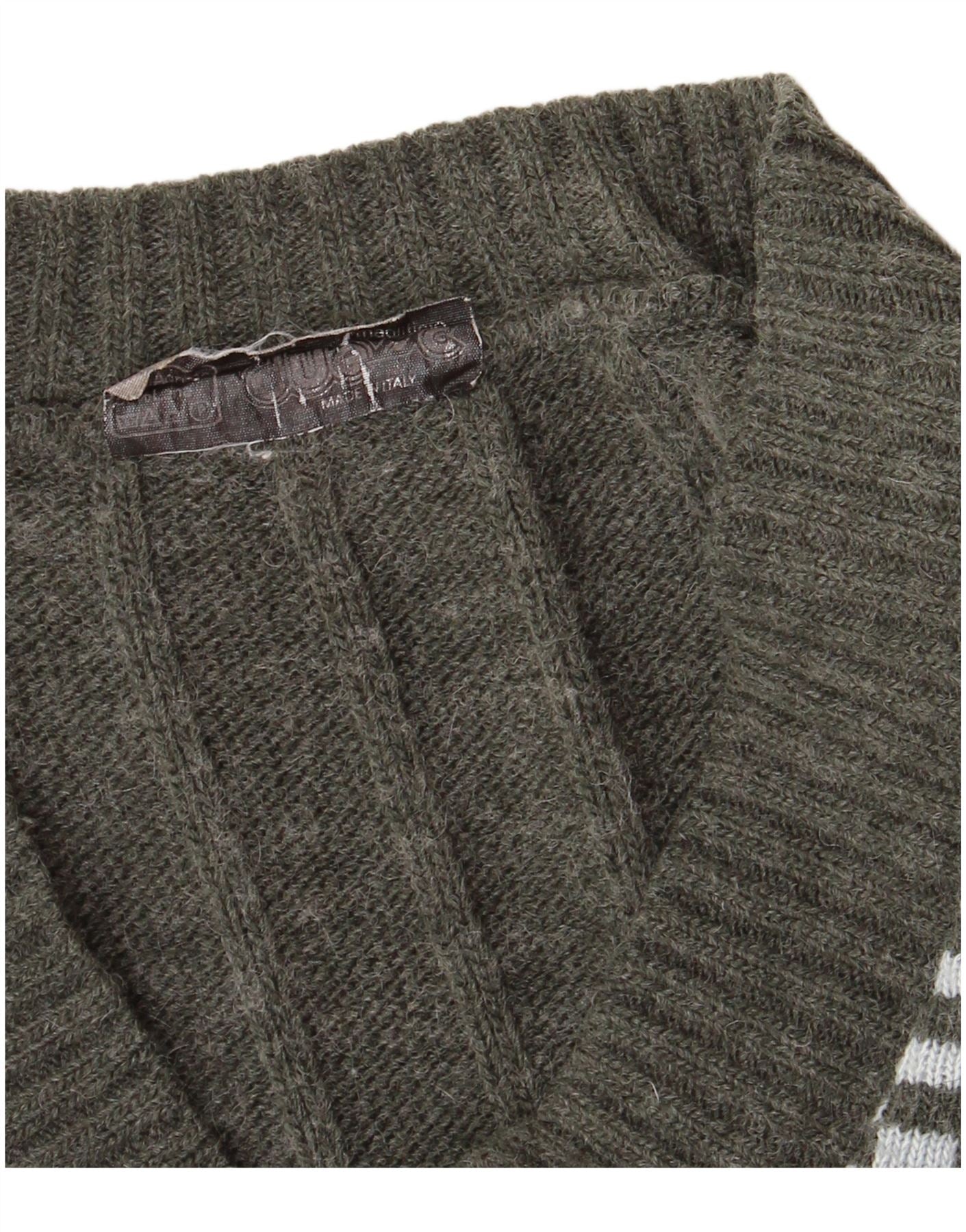 Γυναικείο πουλόβερ VINTAGE Ζακέτα UK 14 Μεγάλο Χακί Γεωμετρικό Ακρυλικό