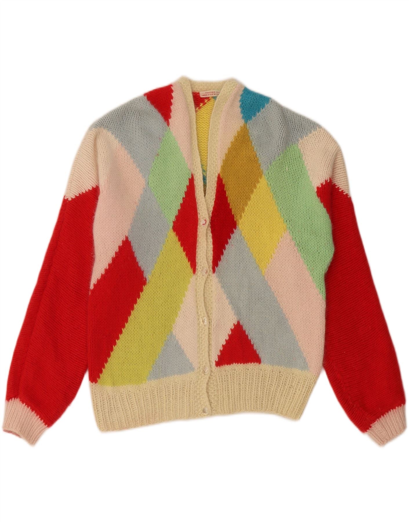 Γυναικείο πουλόβερ VINTAGE Ζακέτα UK 14 Μεγάλο πολύχρωμο Argyle/Διαμάντι