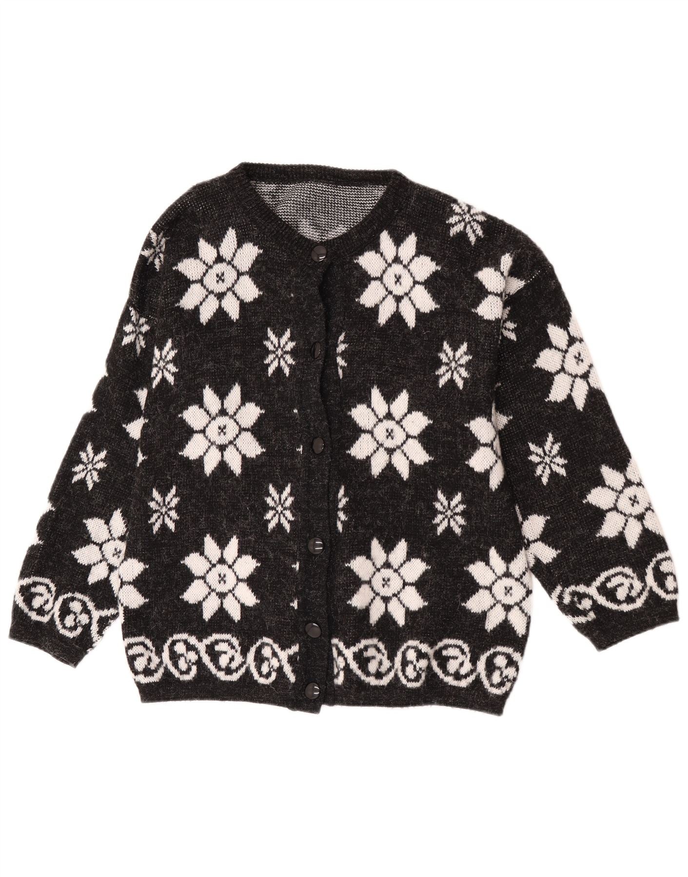 - Περιγραφή AI: Αυτό το vintage γυναικείο πουλόβερ ζακέτα είναι φτιαγμένο από απαλό πλεκτό ύφασμα σε κλασικό μαύρο. Διαθέτει ένα εντυπωσιακό λευκό σχέδιο νιφάδας χιονιού σε όλο το σώμα και τα μανίκια. Το μπροστινό μέρος είναι ασφαλισμένο με τονικά κουμπιά. Στρογγυλή λαιμόκοψη και μακριά μανίκια ορίζουν την άνετη σιλουέτα του. Η κανονική εφαρμογή προσφέρει ένα διαχρονικό, χαλαρό στυλ. Αυτό το εμπνευσμένο ρετρό κομμάτι συνδυάζει τη ζεστασιά με την χαρακτηριστική οπτική έλξη.
