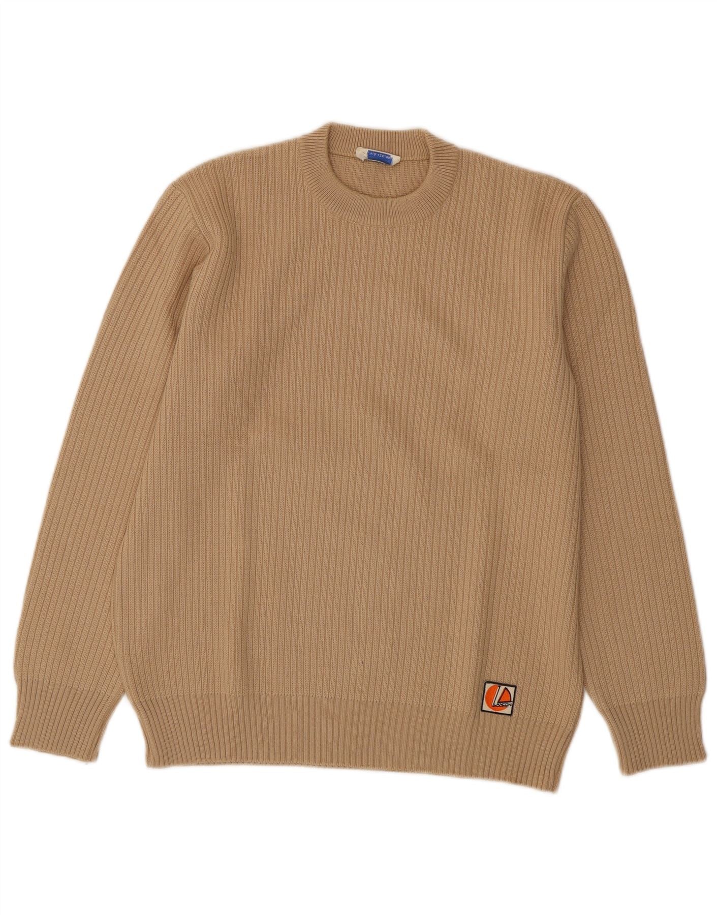 VINTAGE Γυναικείο πουλόβερ με λαιμόκοψη UK 16 Μεγάλο μπεζ μαλλί