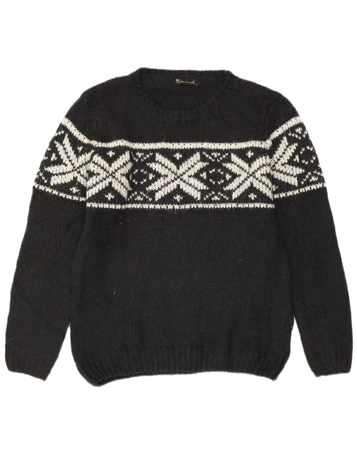 VINTAGE Γυναικείο πουλόβερ με λαιμόκοψη UK 16 Large Black Fair Isle Wool