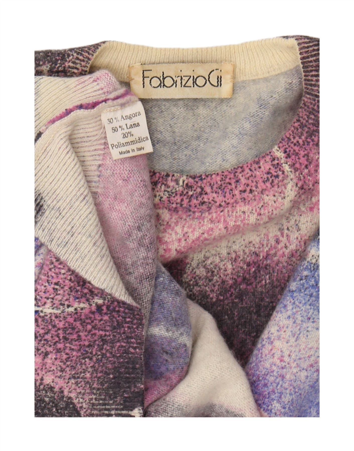 Vintage γυναικείο πουλόβερ με λαιμόκοψη UK 16 Μεγάλη πολύχρωμη Angora
