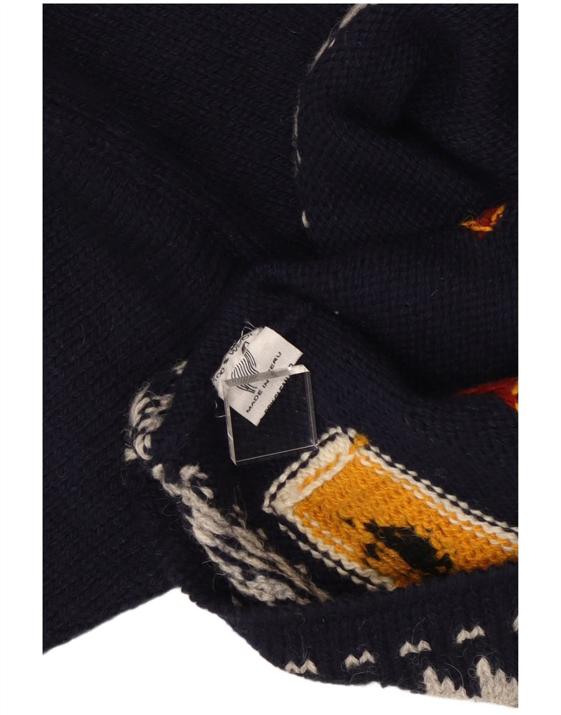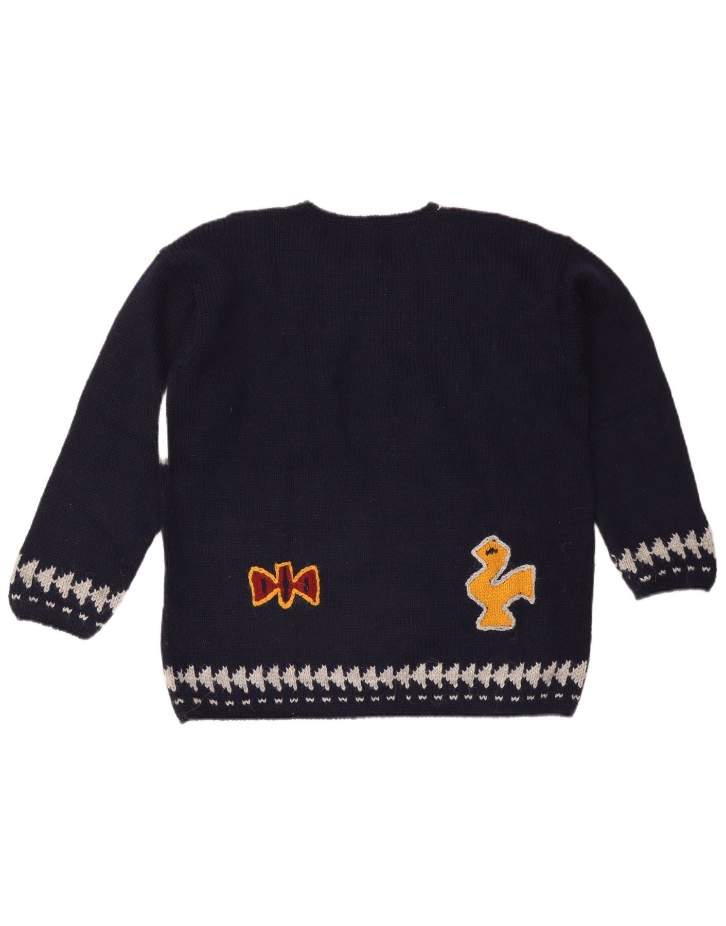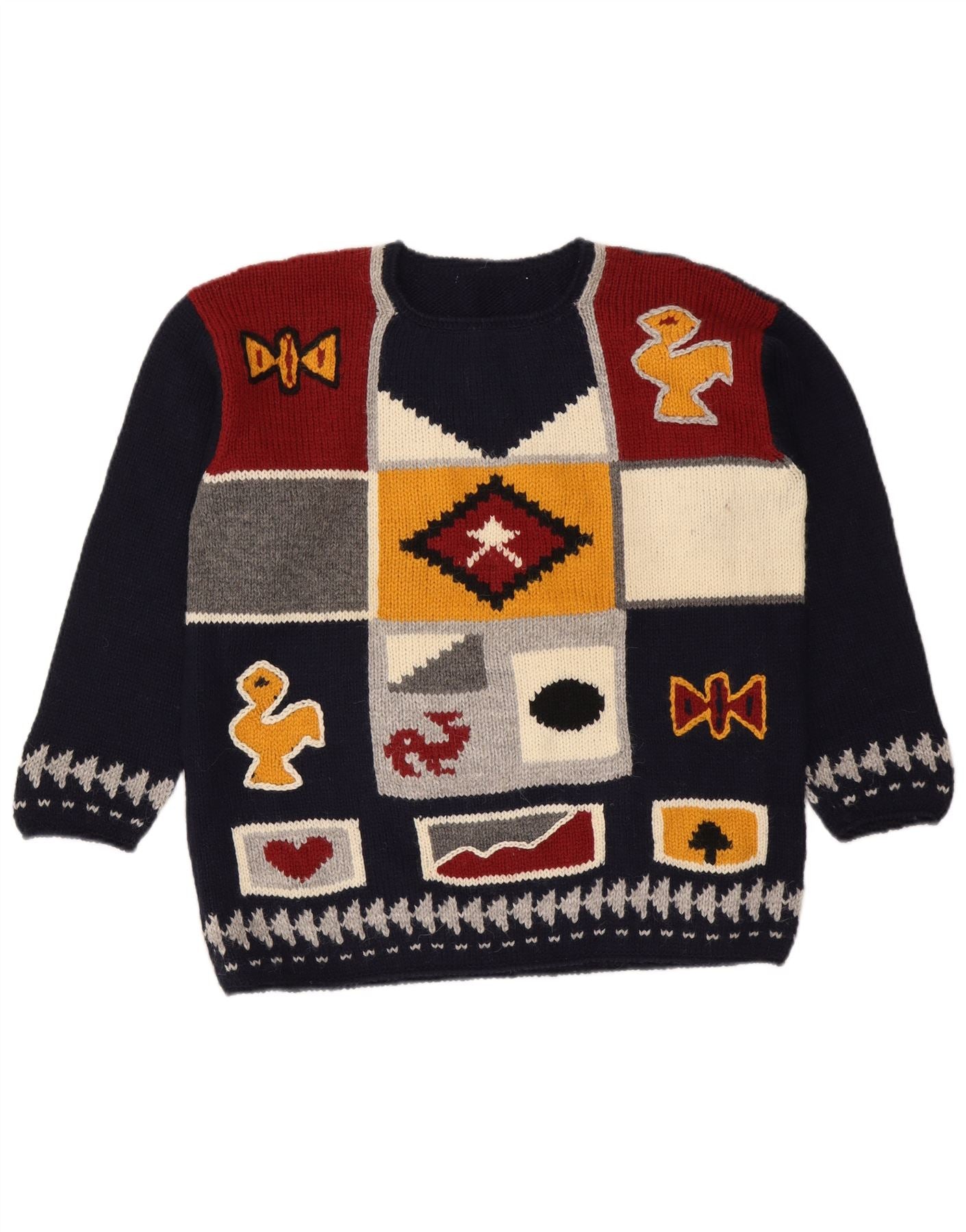 VINTAGE Γυναικείο πουλόβερ με λαιμόκοψη UK 16 Large Navy Blue Geometric