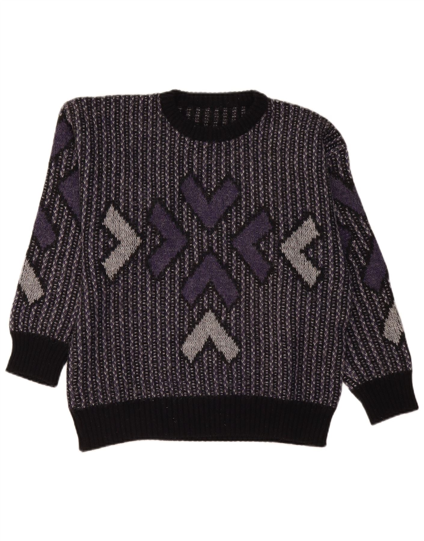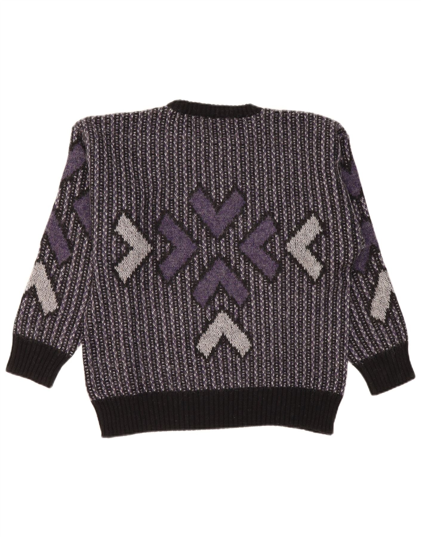 VINTAGE Γυναικείο πουλόβερ με λαιμόκοψη UK 16 Μεγάλο Μωβ γεωμετρικό μαλλί
