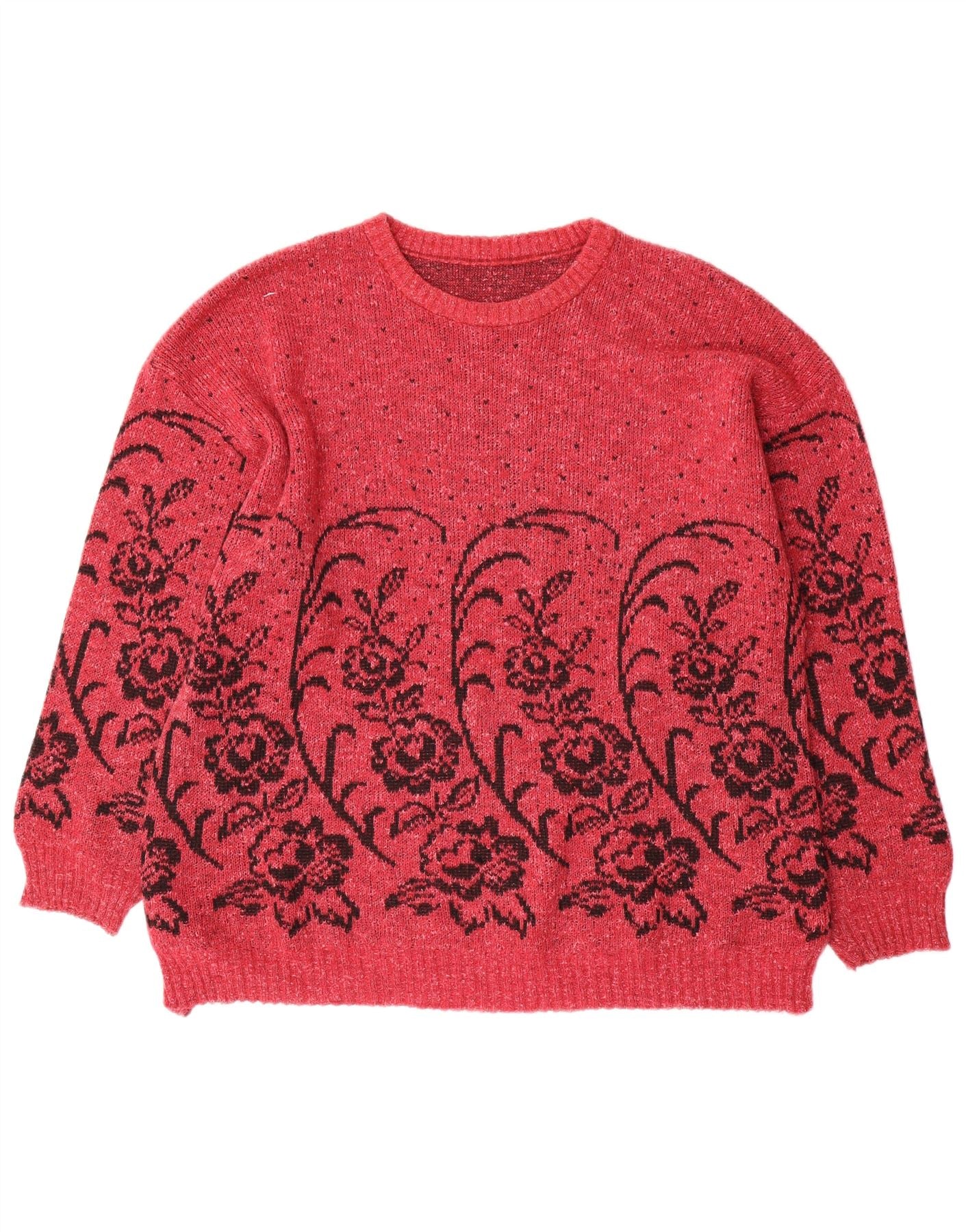 Γυναικείο πουλόβερ με λαιμόκοψη VINTAGE UK 16 Large Red Floral