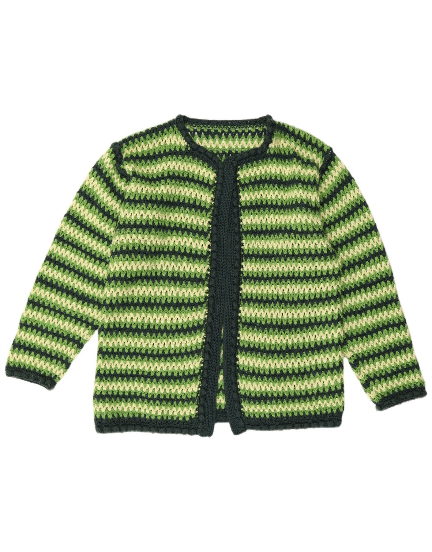 VINTAGE Γυναικείο πουλόβερ ζακέτα με βελονάκι UK 16 μεγάλο πράσινο ριγέ