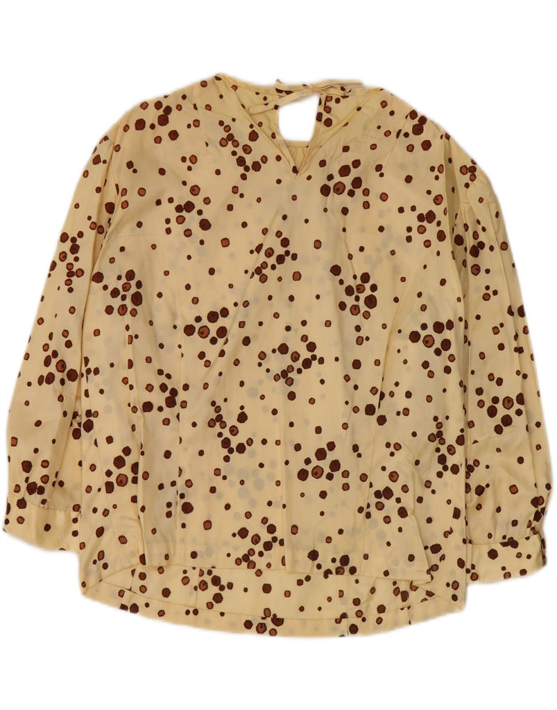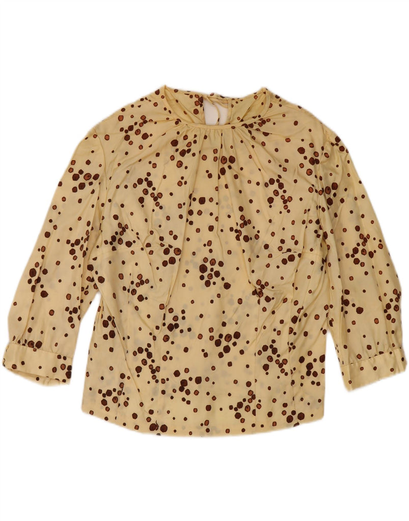 VINTAGE Womens Crop 3/4 Sleeve Blouse Top UK 14 Medium Yellow Spotted