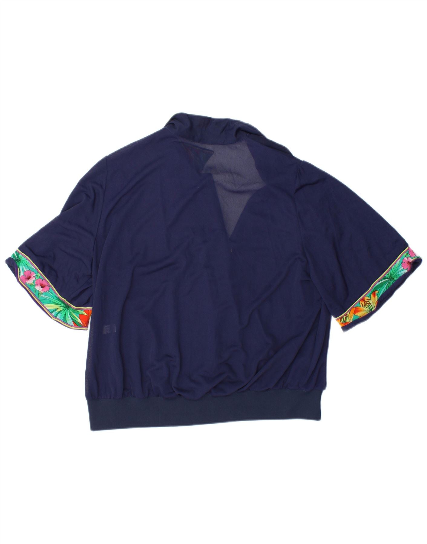 VINTAGE Γυναικεία Crop Μπλούζα Τοπ IT 48 XL Navy Blue Floral