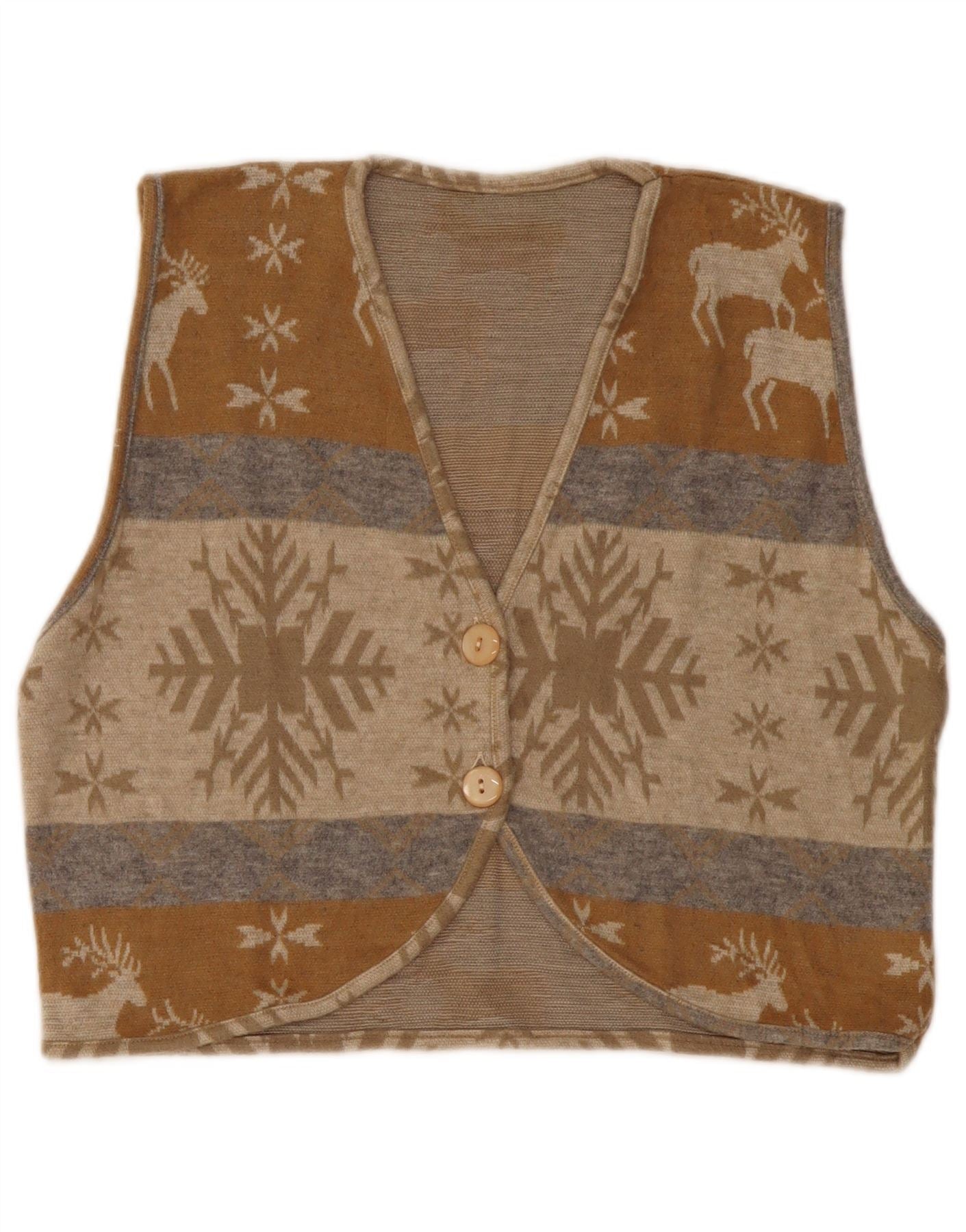 Γυναικείο πουλόβερ VINTAGE Crop Cardigan UK 14 Medium Beige Fair Isle