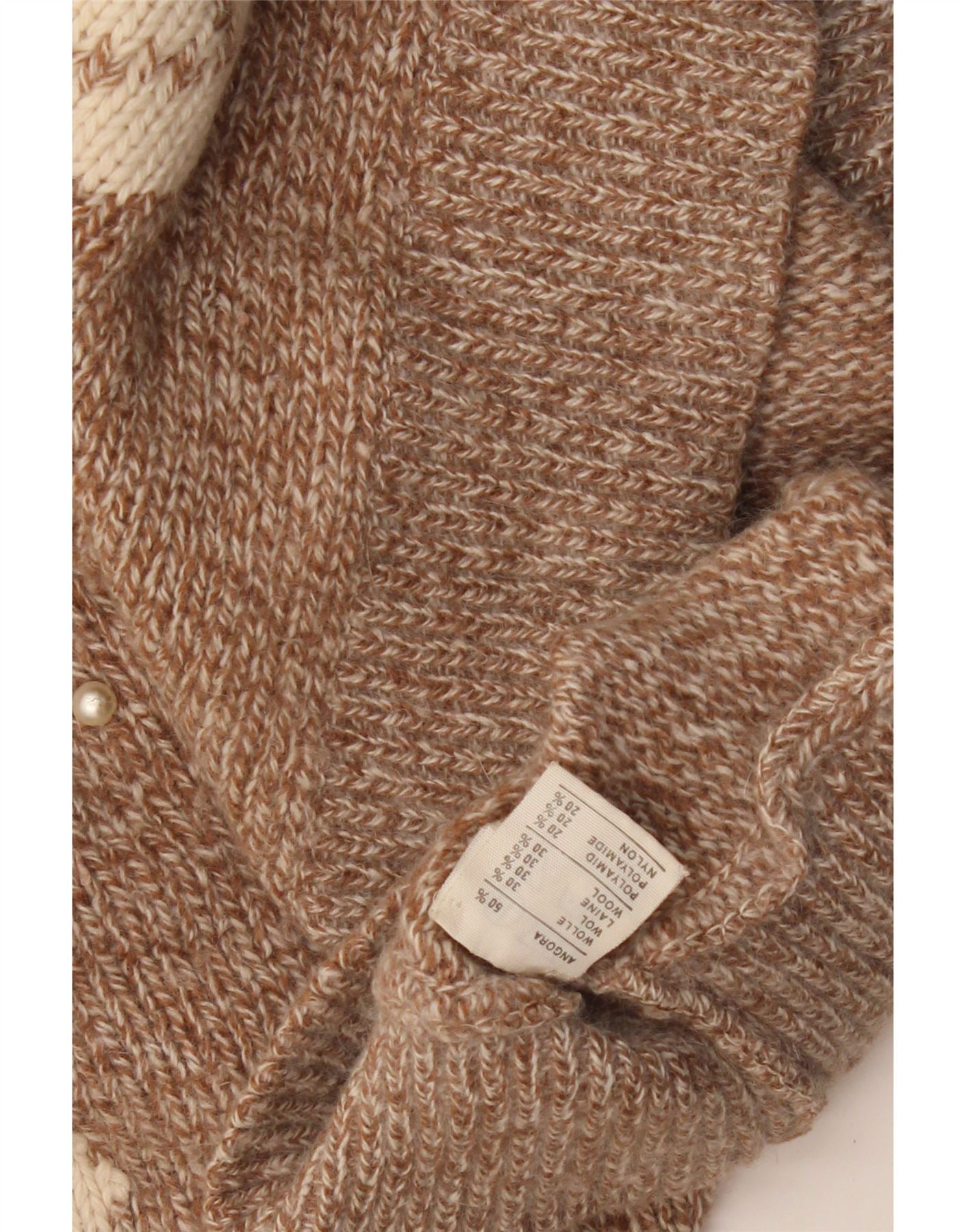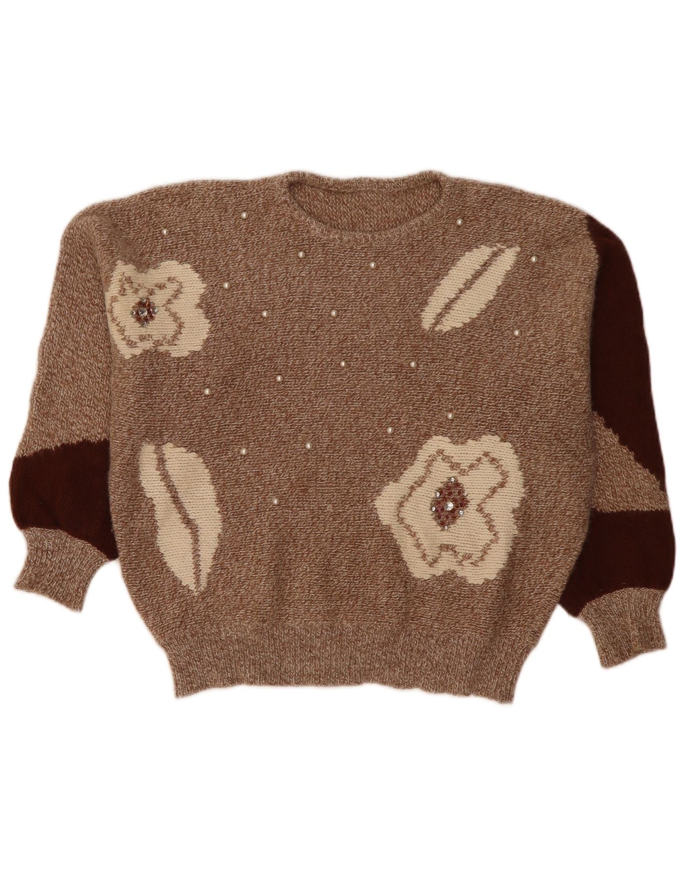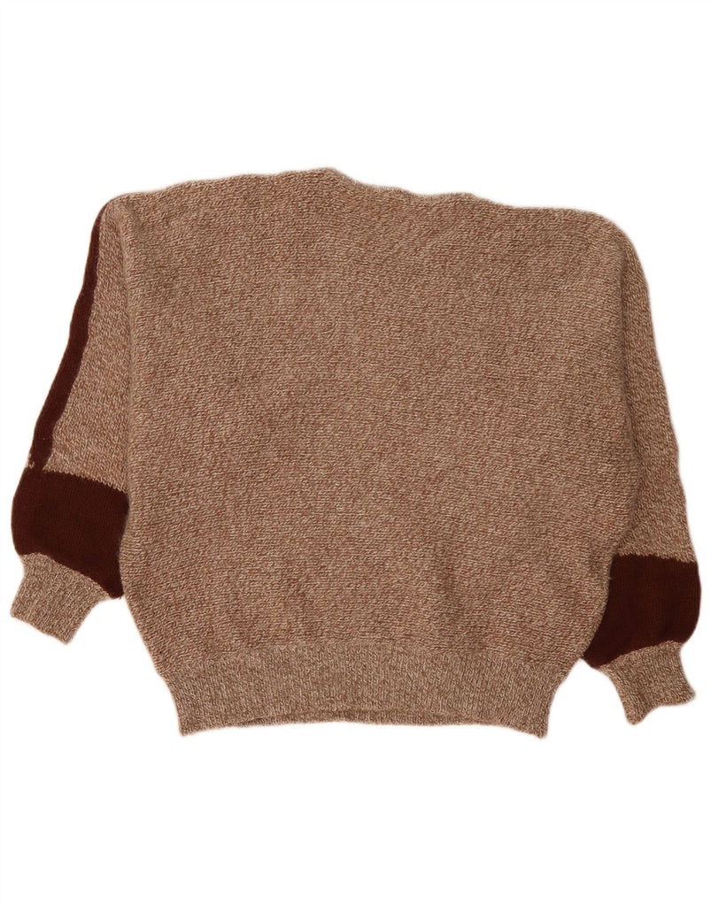 Γυναικείο πουλόβερ με λαιμόκοψη VINTAGE Crop Crew UK 14 με μεσαίο καφέ
