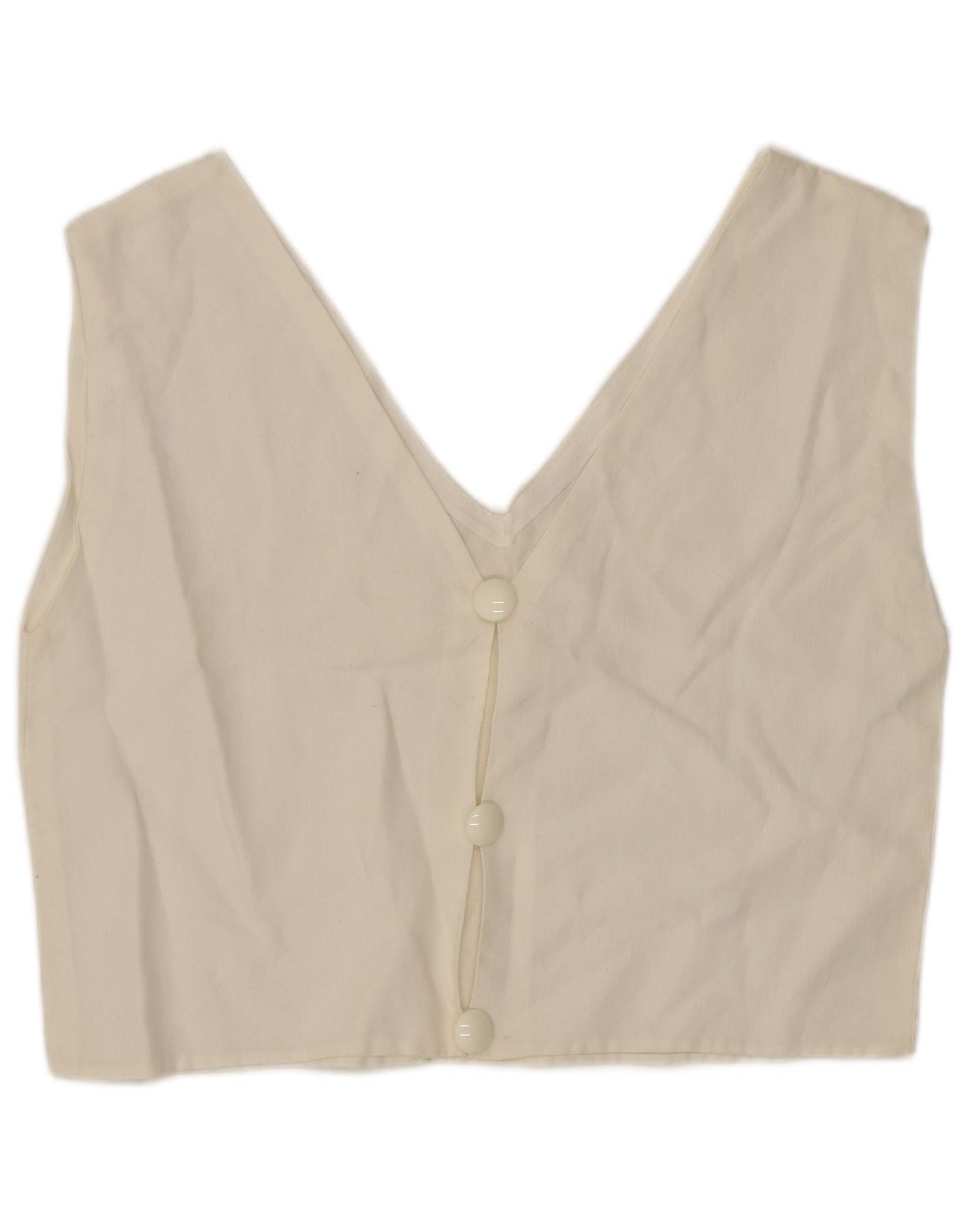 VINTAGE Γυναικείο Αμάνικο Πουκάμισο Μπλούζα UK 12 Medium White