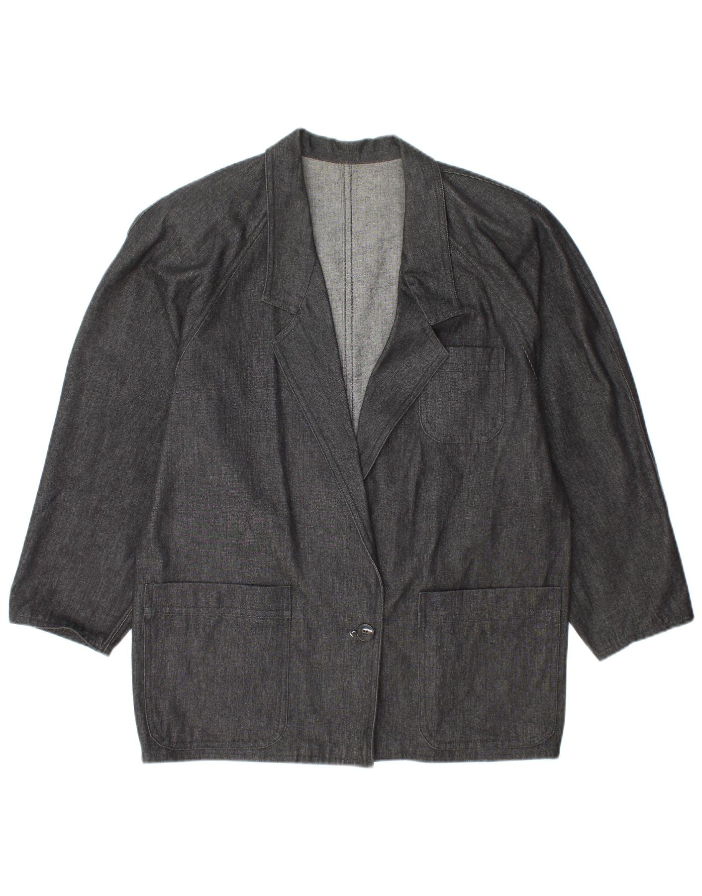 VINTAGE Γυναικείο Τζιν Μπουφάν 1 Κουμπί Blazer UK 14 Large Grey