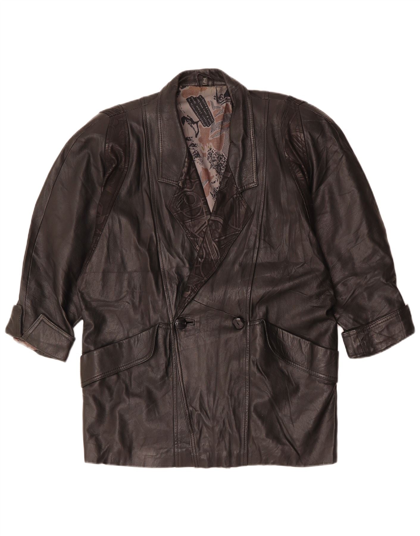 - Περιγραφή AI: Αυτό το Vintage γυναικείο δερμάτινο μπουφάν είναι φτιαγμένο από απαλό μαύρο δέρμα, προσφέροντας μια πολυτελή αίσθηση. Διαθέτει λαιμόκοψη με γιακά και κλείσιμο με διπλό στήθος. Τα μανίκια μήκους 3/4 προσθέτουν μια ξεχωριστή πινελιά. Η κανονική εφαρμογή εξασφαλίζει άνετη χρήση. Το σακάκι περιλαμβάνει πρακτικές τσέπες. Το ρετρό στυλ του ενισχύεται από την επένδυση με γεωμετρικό σχέδιο, προσθέτοντας μια απροσδόκητη λεπτομέρεια.