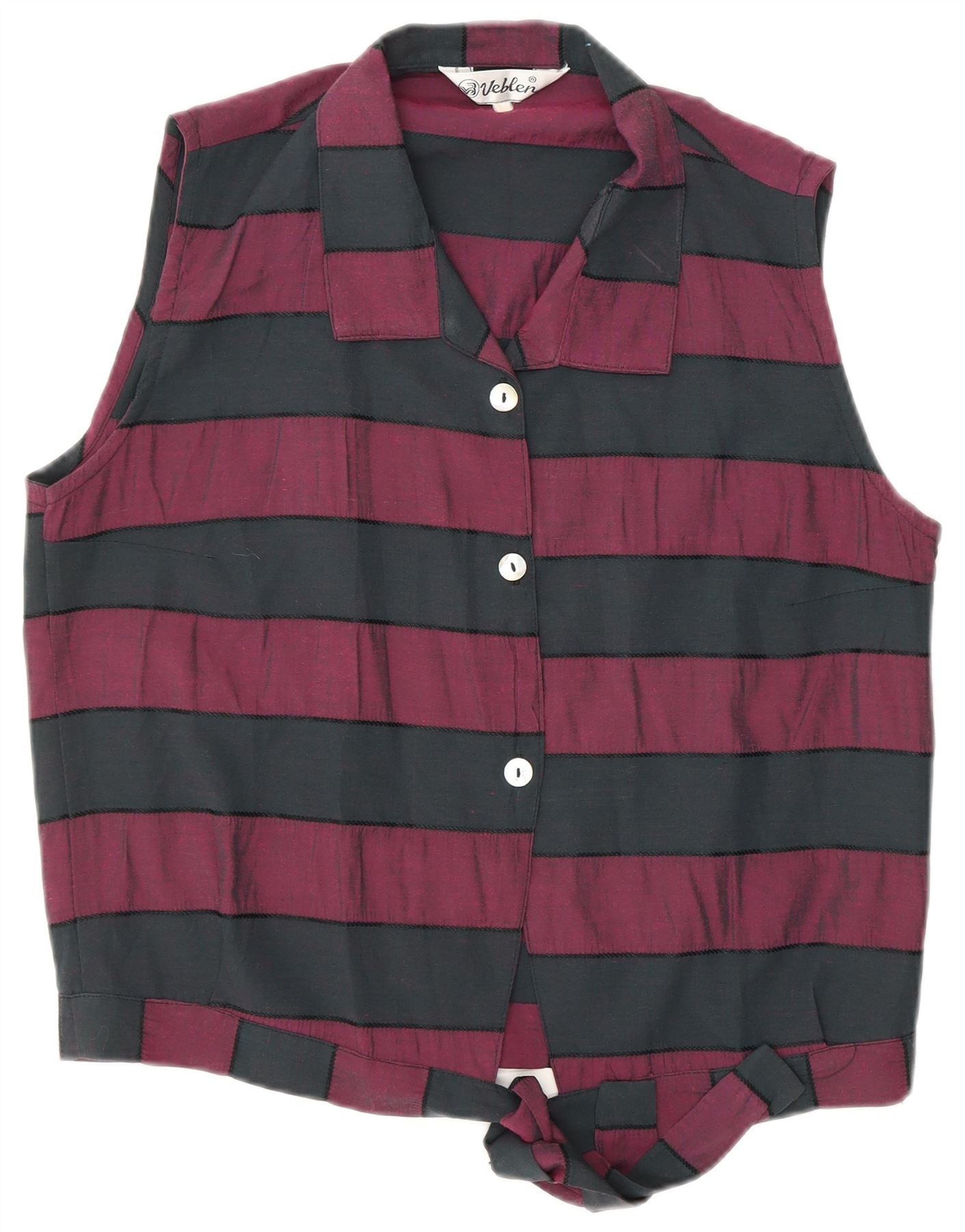 VINTAGE Γυναικείο πουκάμισο με γραβάτα μπλούζα UK 16 Μέτριο Μαύρο ριγέ