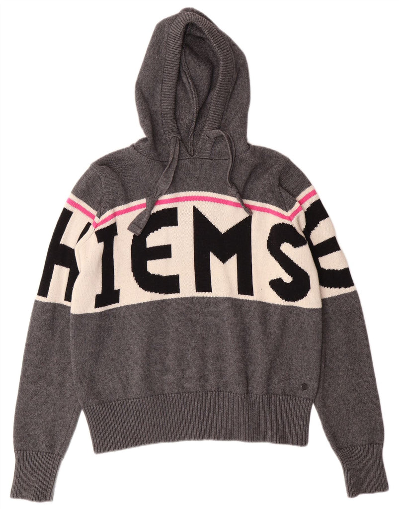 Γυναικείο γραφικό πουλόβερ με κουκούλα VINTAGE UK 10 Small Grey Colourblock
